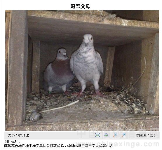 下图冠军平辈花砂眼雄 上面巢格中是大羽公棚88名柴孝荣灰雌