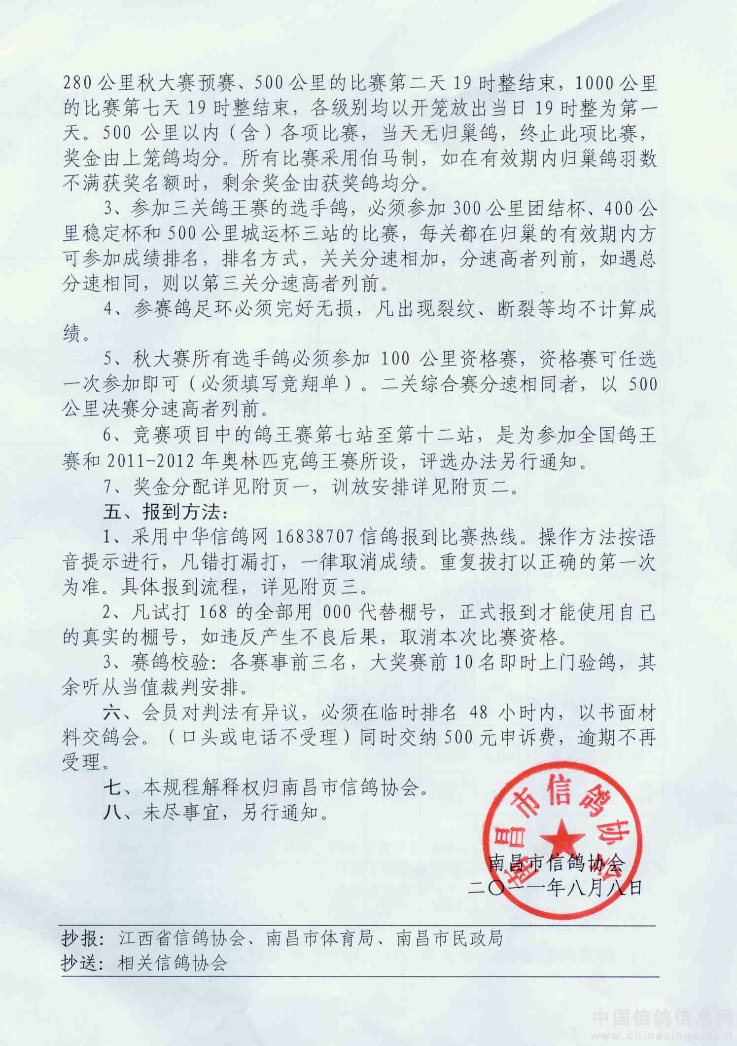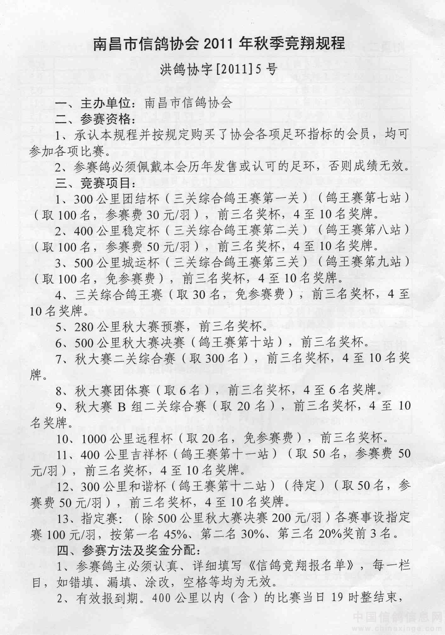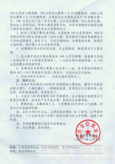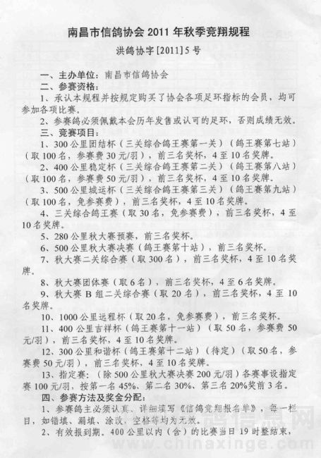 南昌市信鸽协会2011秋季竞翔规程