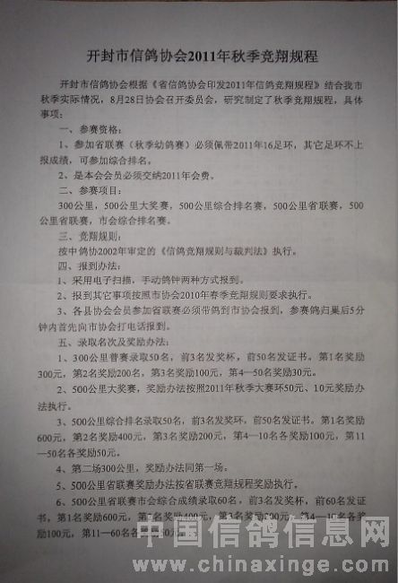 拟定2024年签约开封市信鸽协会 信鸽竞赛名录的通知