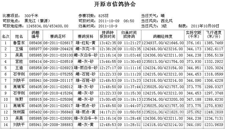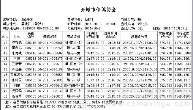 开原市信鸽协会2022年至2023年会员比赛鸽舍+空距坐标!