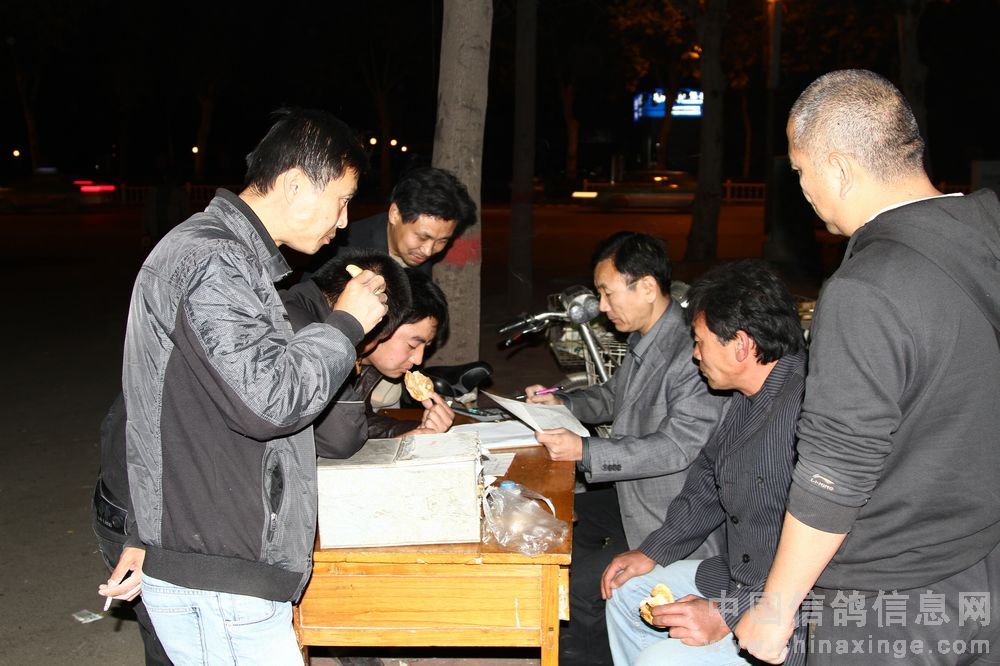 11.深夜,热心的会员朋友仍然陪伴工作人员整理指定鸽详单。协会表示感谢!