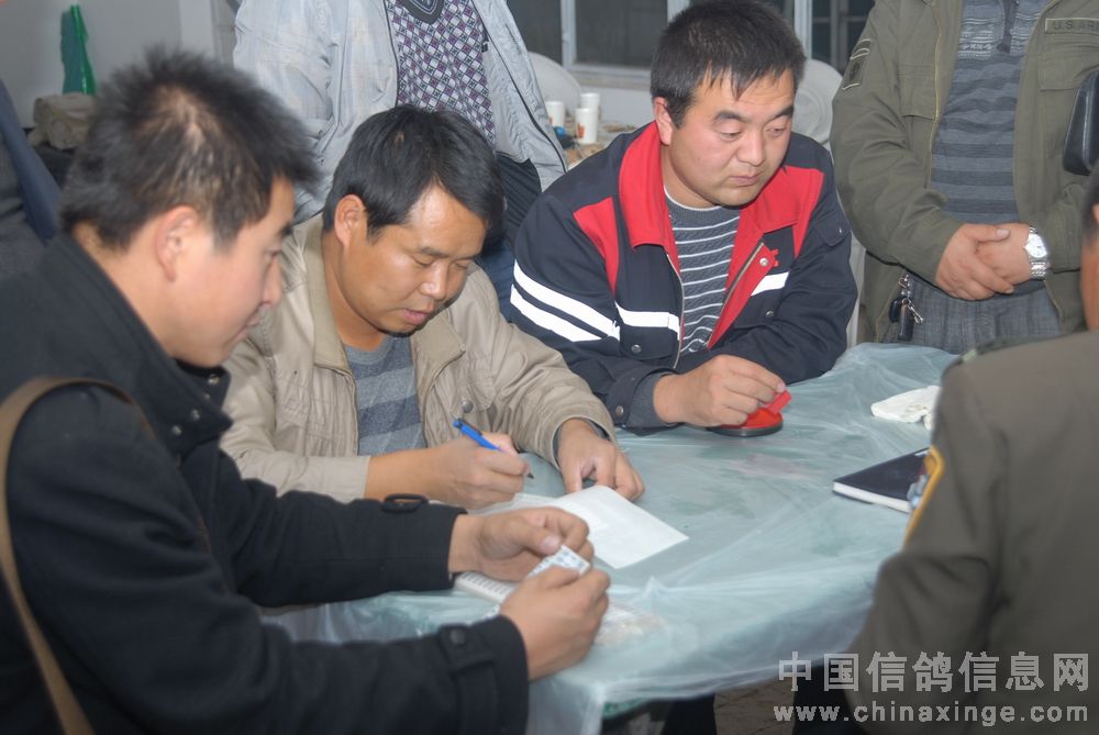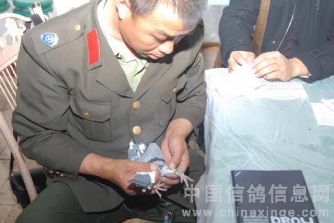 鸽友严格监督、核对赛鸽