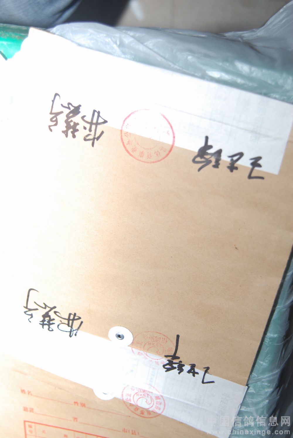 集鸽人员认真粘贴密码条