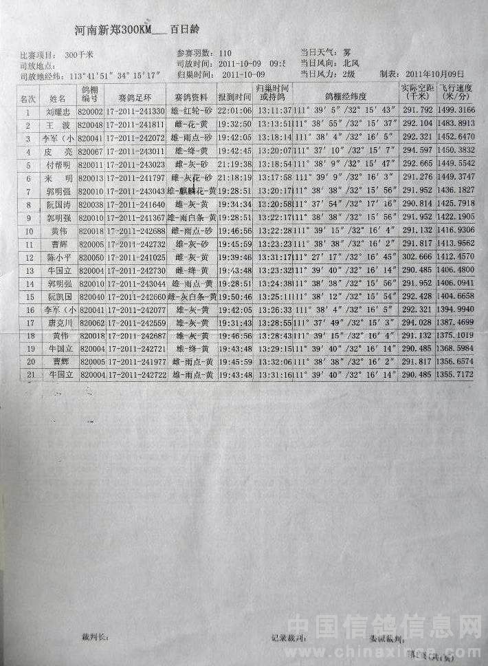 2025年谷城县信鸽协会竟翔规程