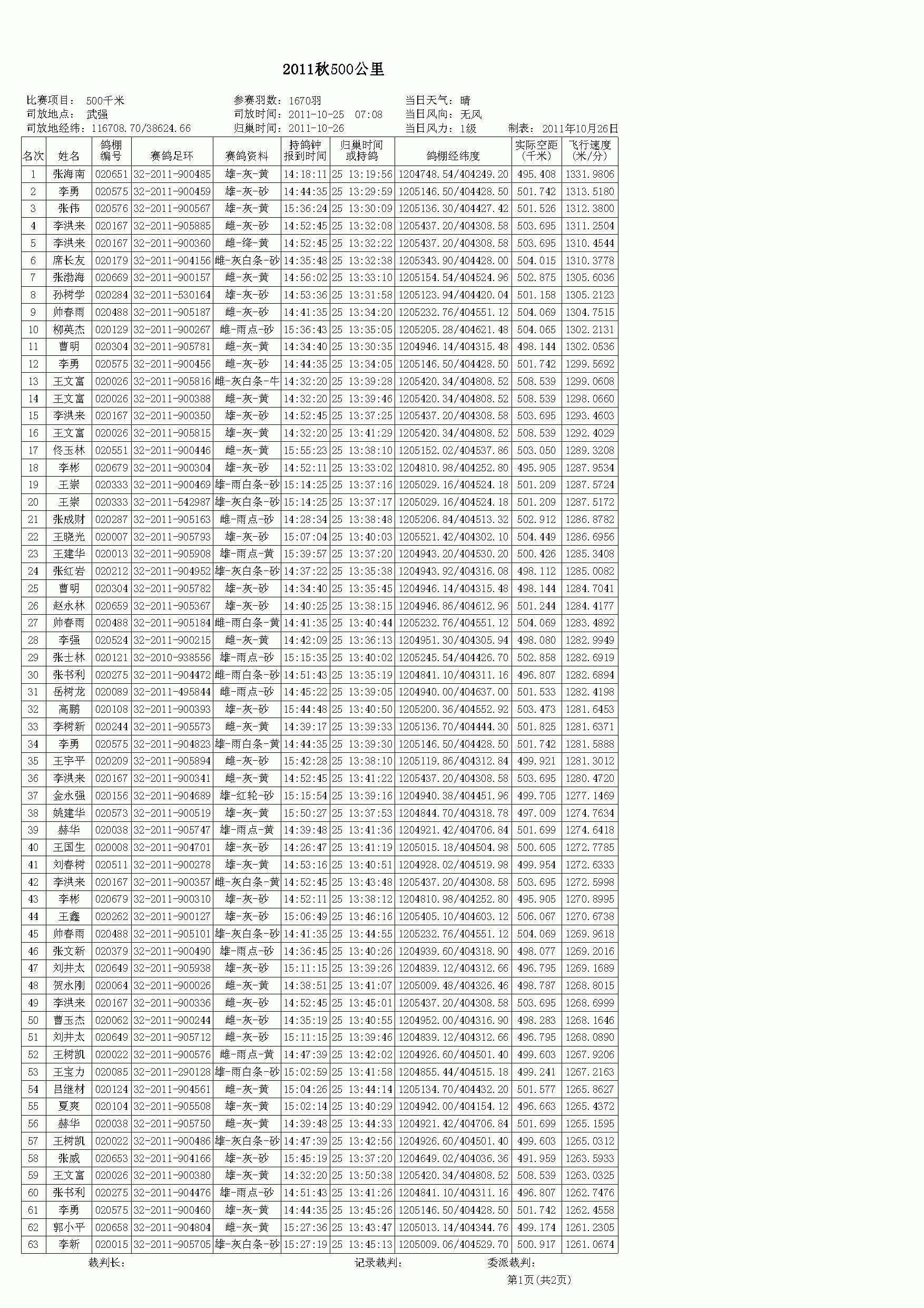 2011秋500公里普赛1