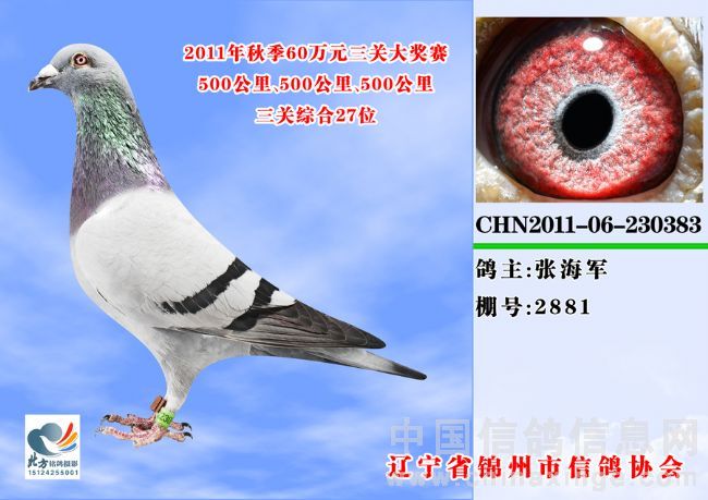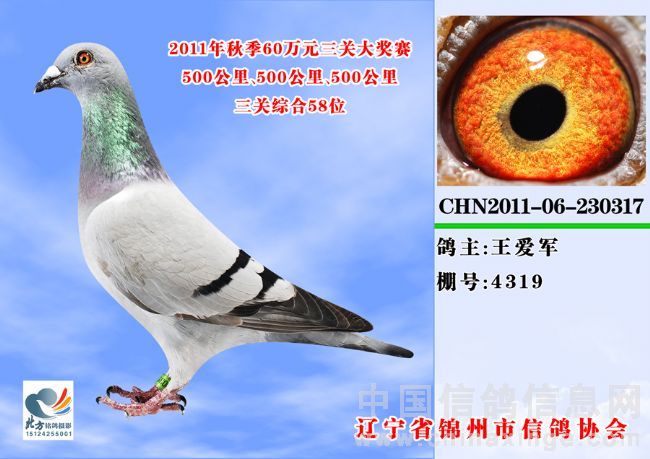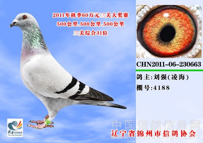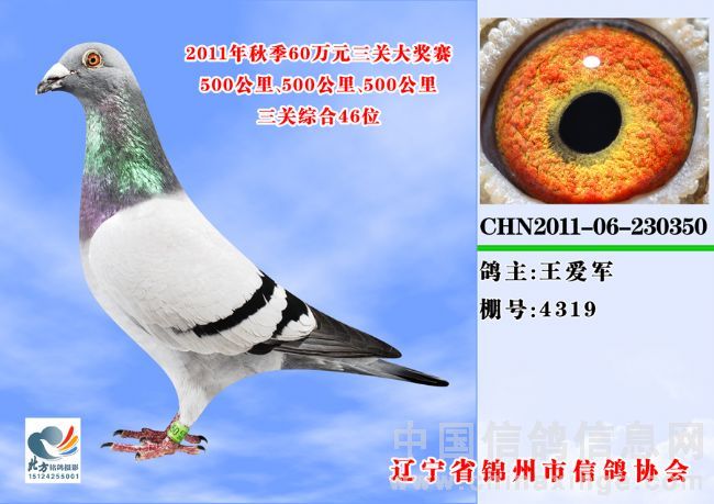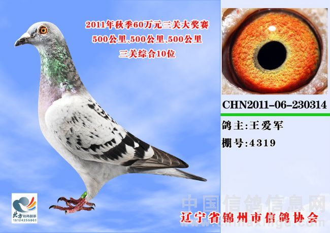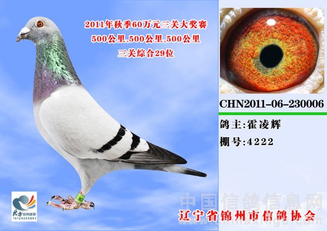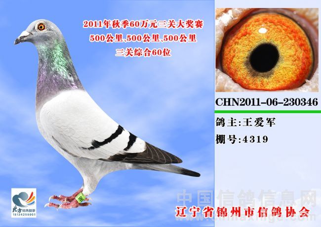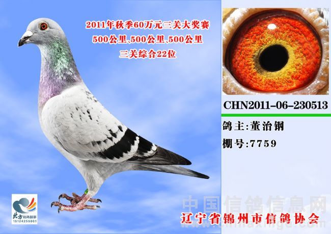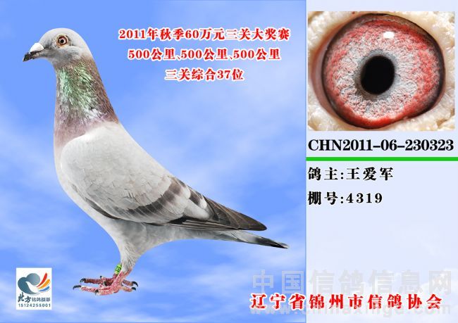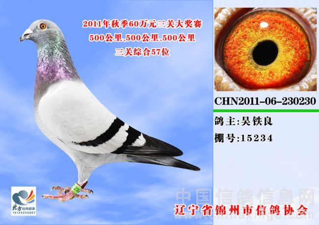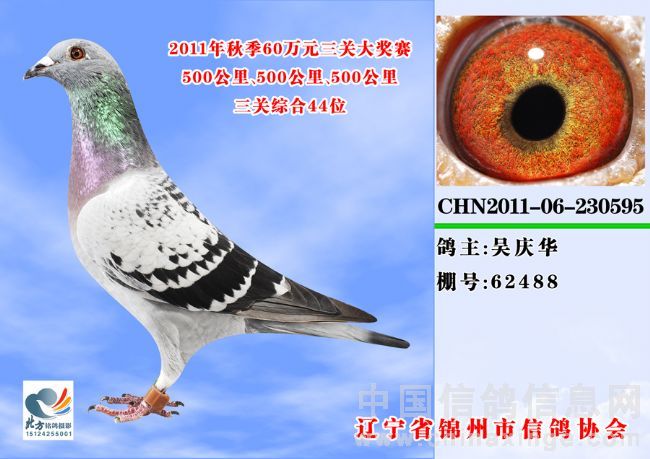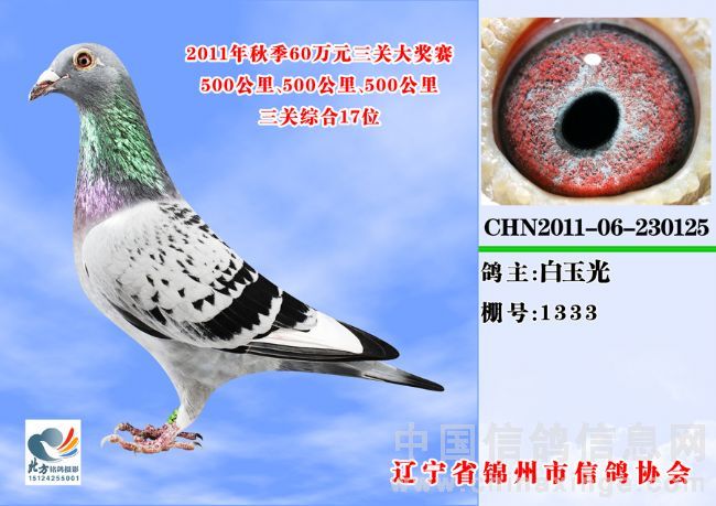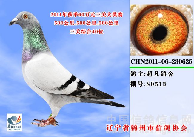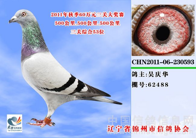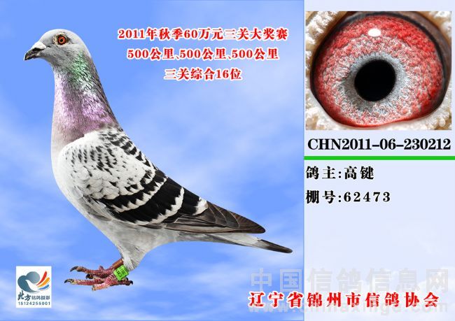 锦州市60万元三关大奖赛综合前60名、部分前十名奖鸽