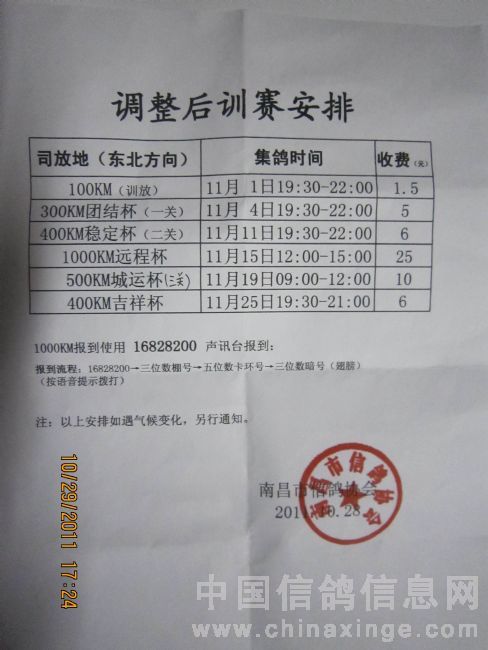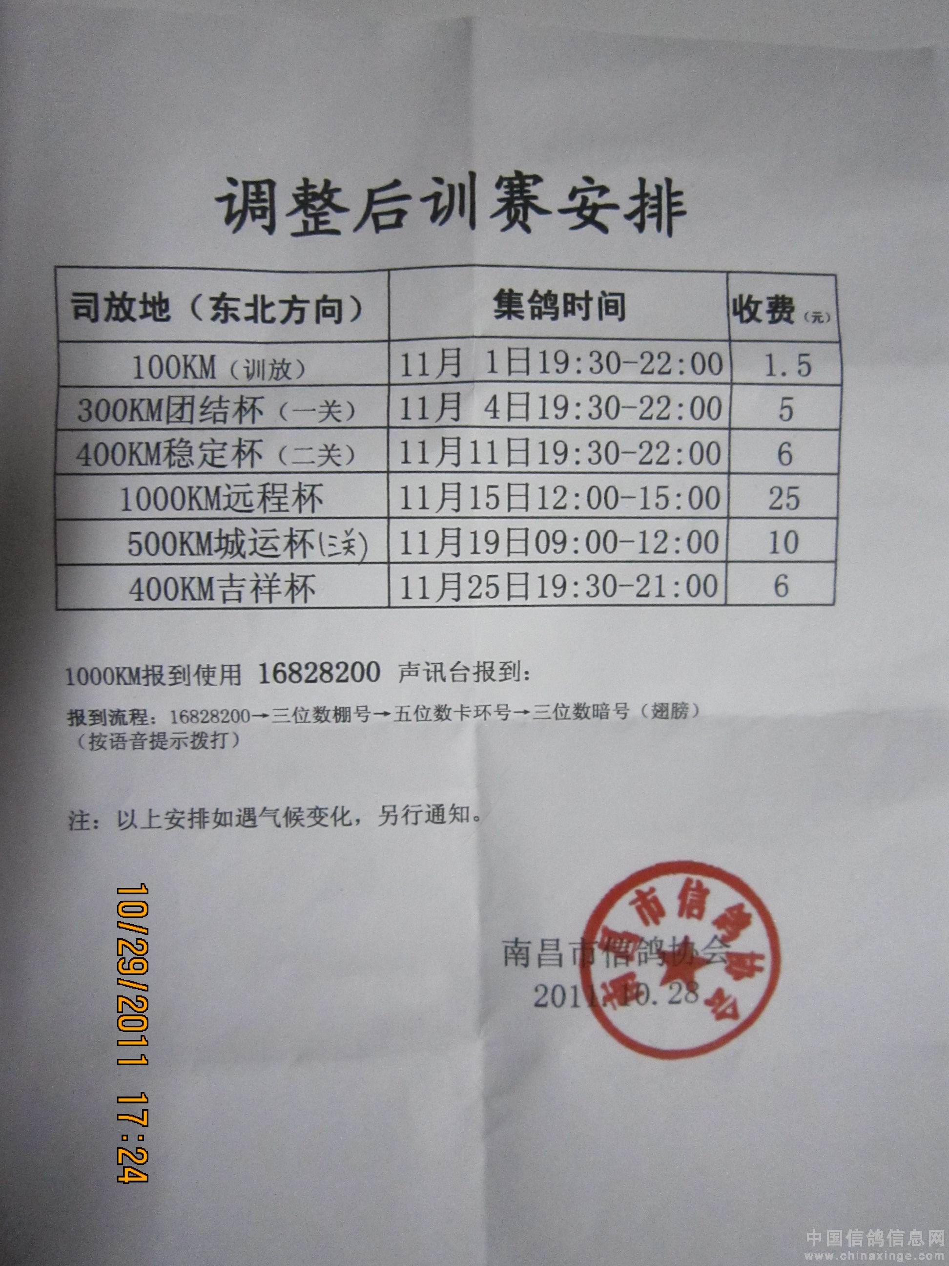 南昌市信鸽协会春季大赛500公里第二关成绩