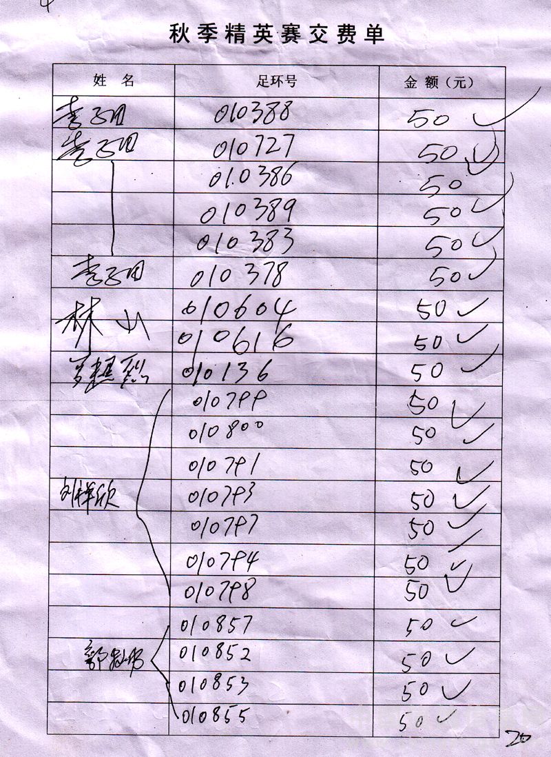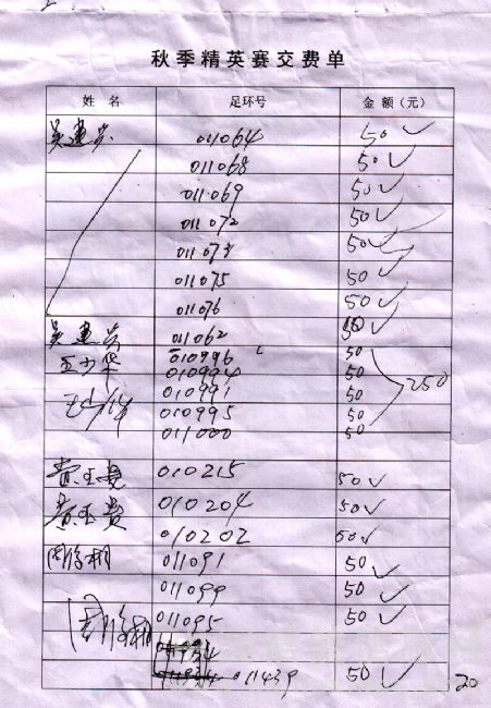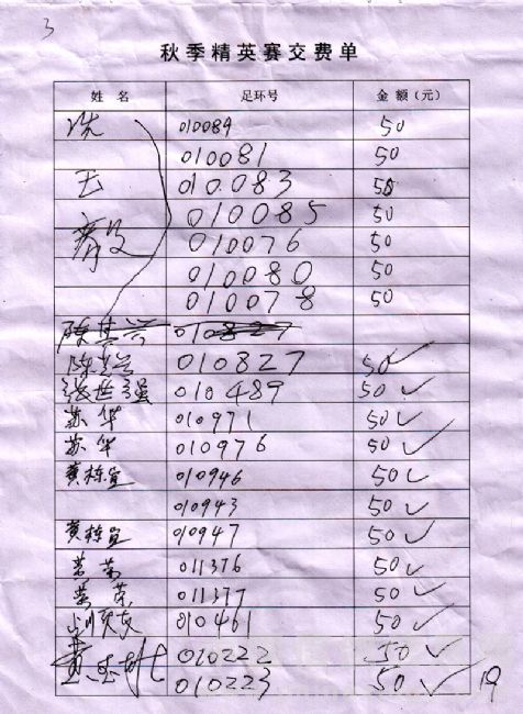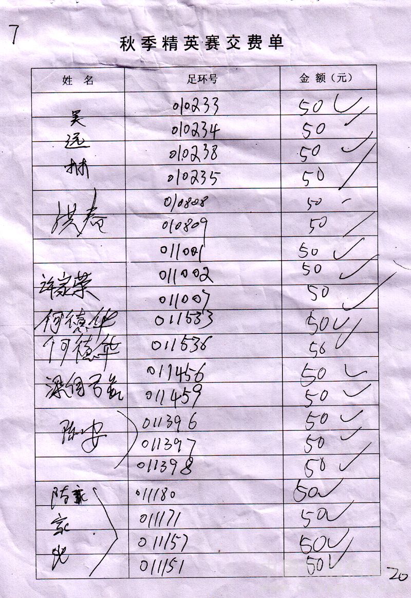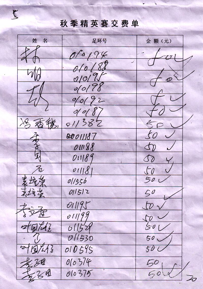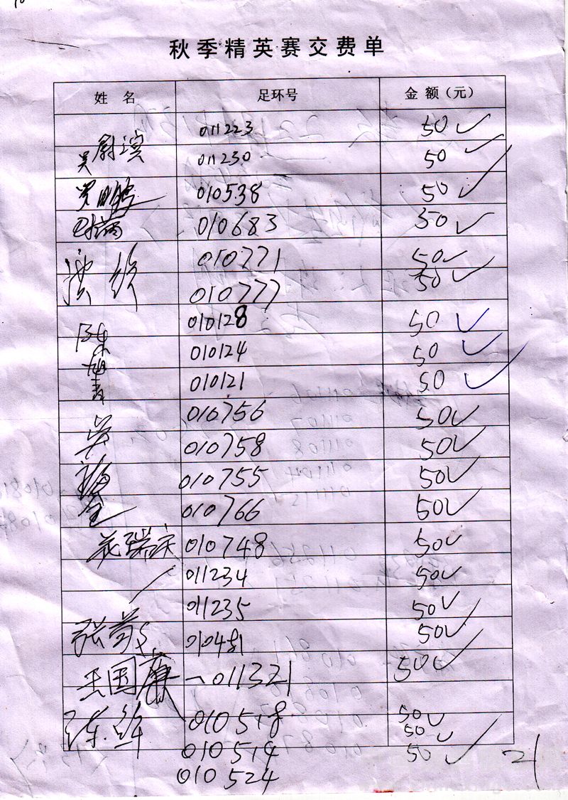 广西北海市信鸽协会2011年下半年百日赛买奖名单
