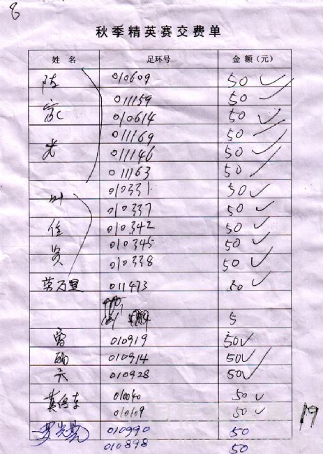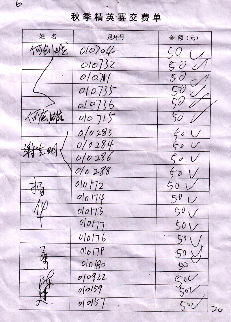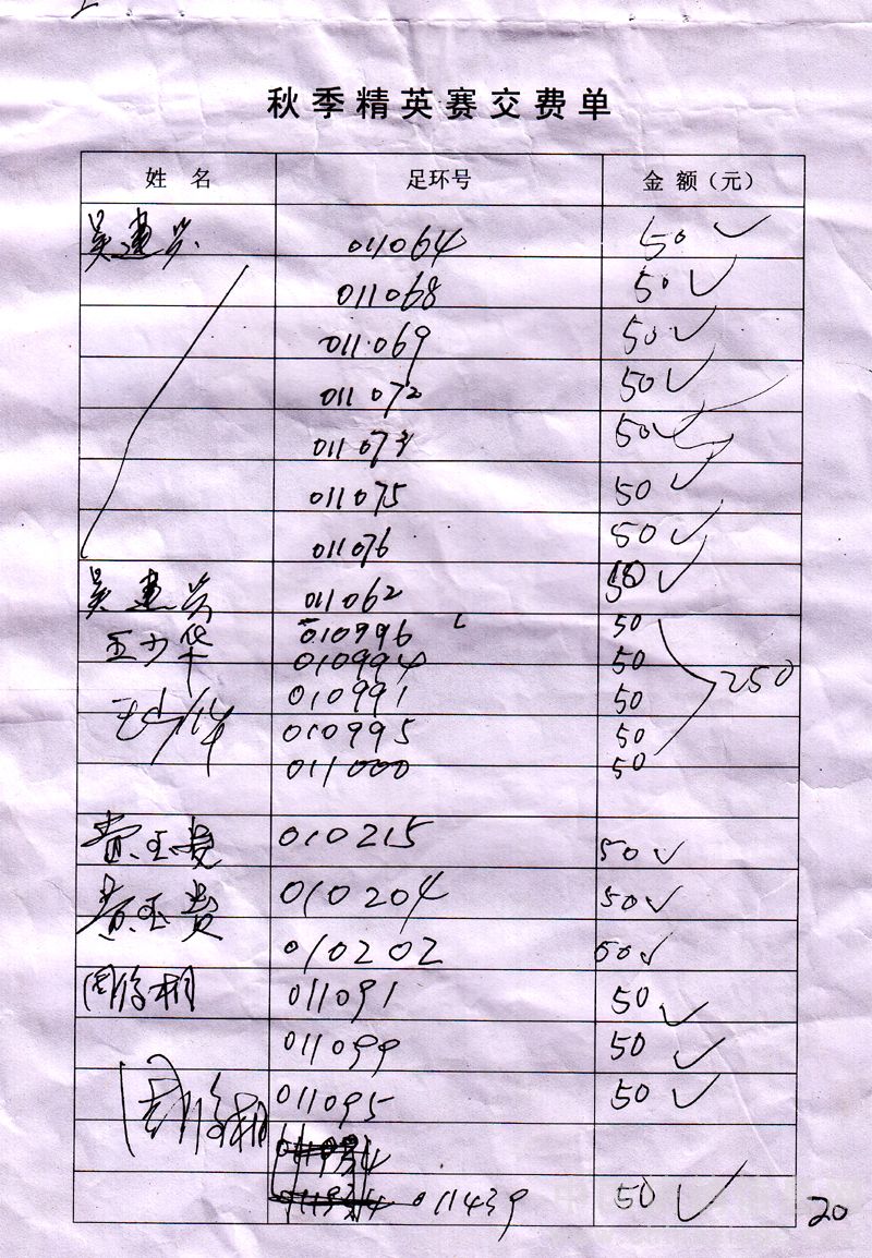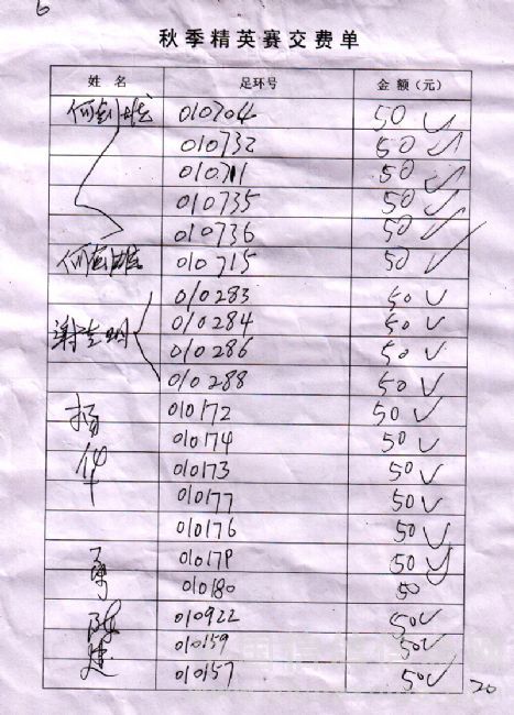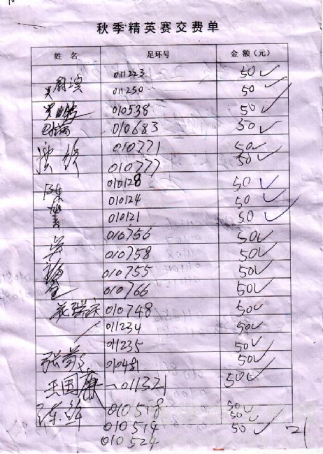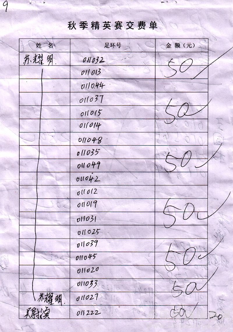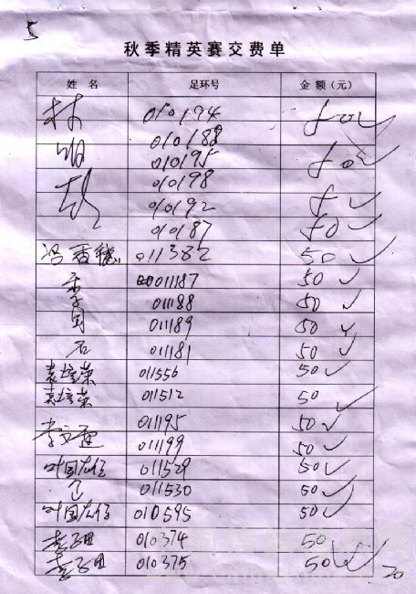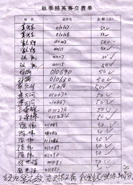 广西北海市信鸽协会2011年下半年百日赛买奖名单