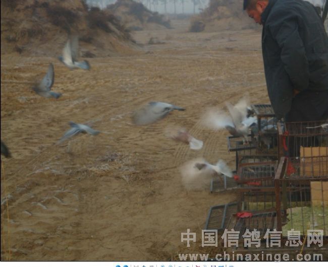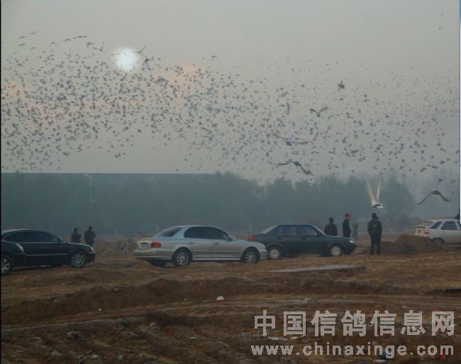 2011年11月11日早上7:30分连云港市新浦区鸽协600公里第三关的赛鸽在北京大兴同参加全国千公里联赛的各地赛鸽同时放出,下面为放飞现场图。