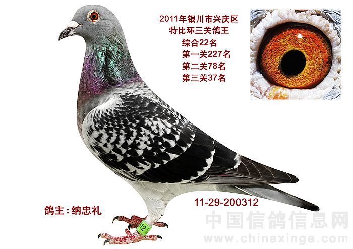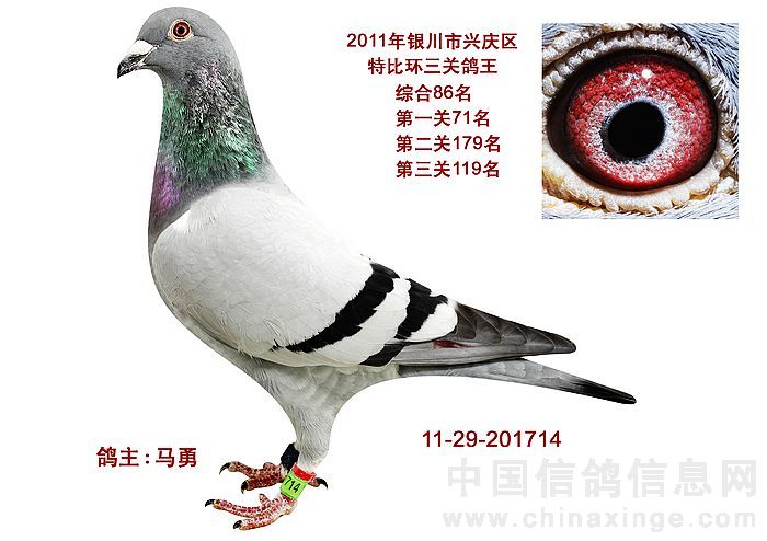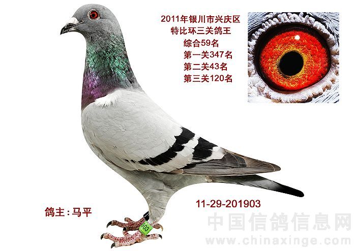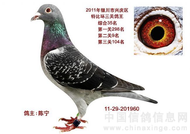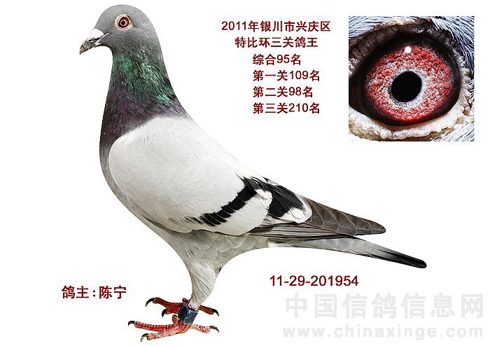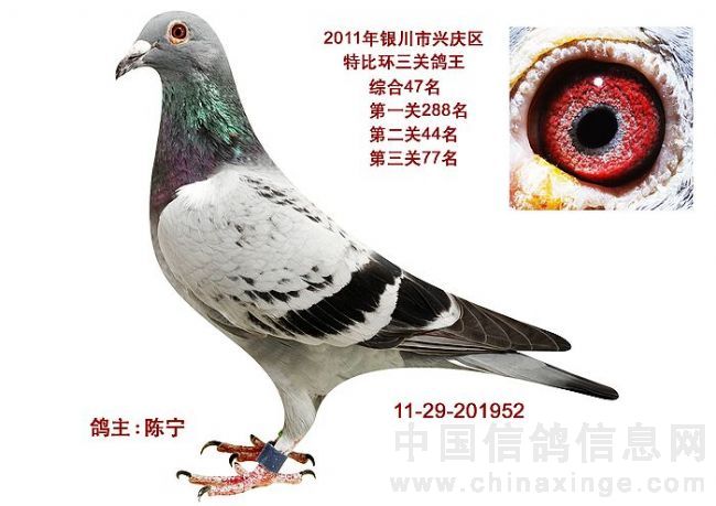 11名陈宁,11-29-201957,雨点砂眼雌鸽,第一关48名,第二关17名,第三关64名(照相时环号报错)