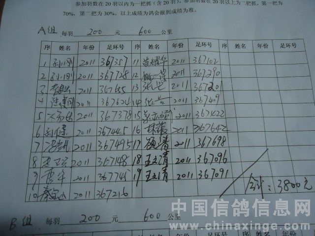昆山信鸽协会600公里参加羽数:1305羽,其中精英348羽,特比A组470羽,B组496羽。