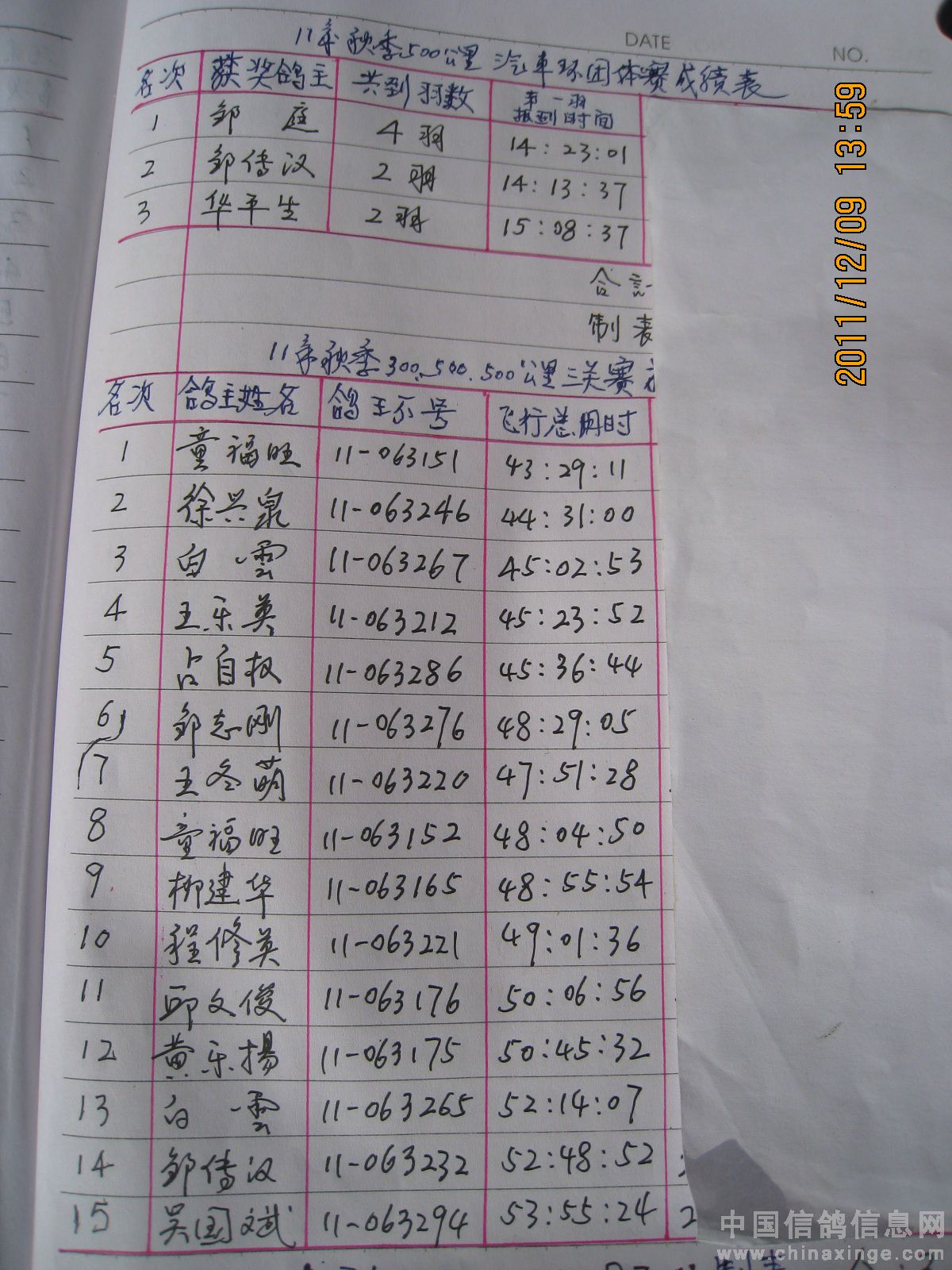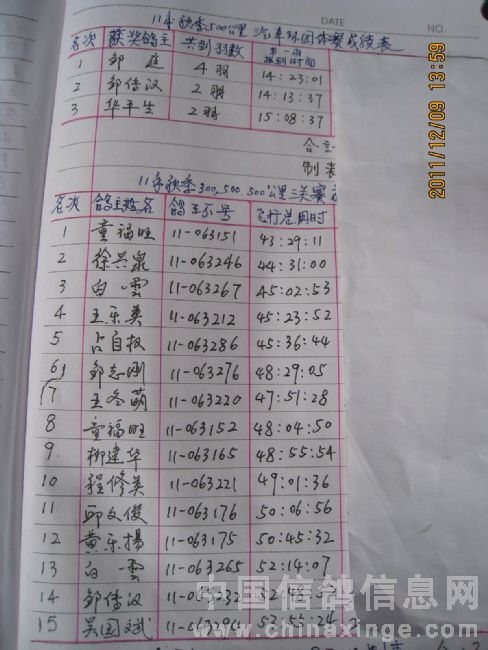 2011年秋季500公里三关赛及汽车赛团体成绩