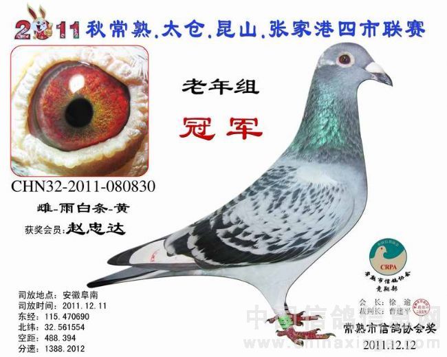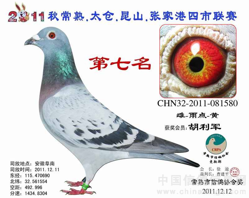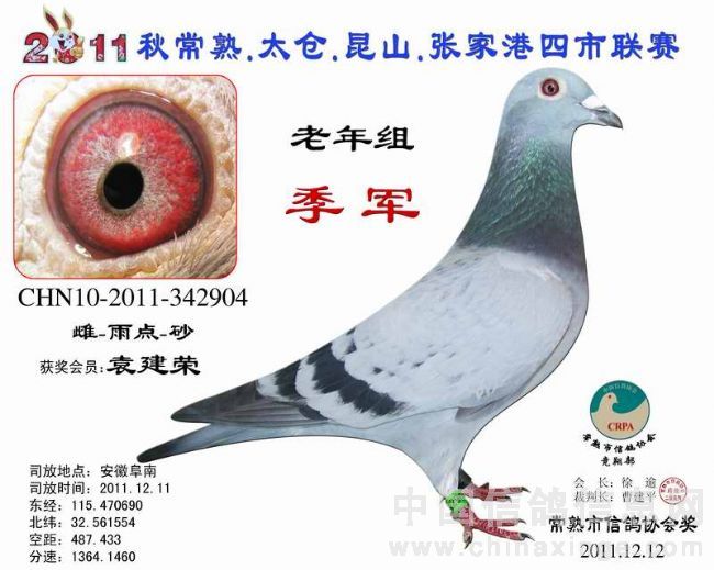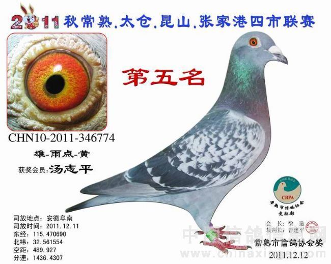 常熟会员 姚宇庆 近日联系获奖鸽拍照.