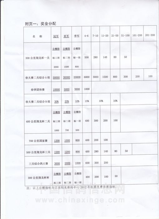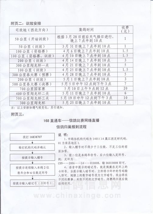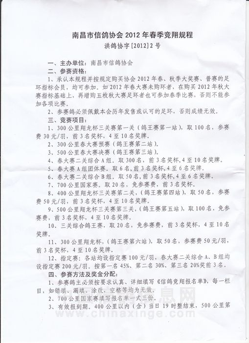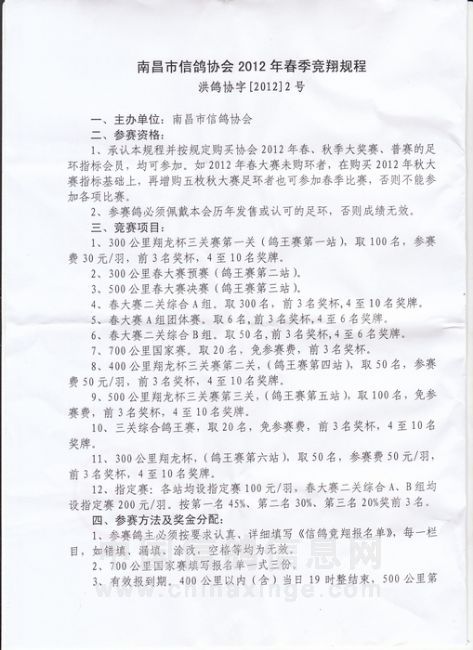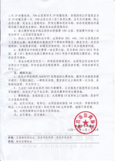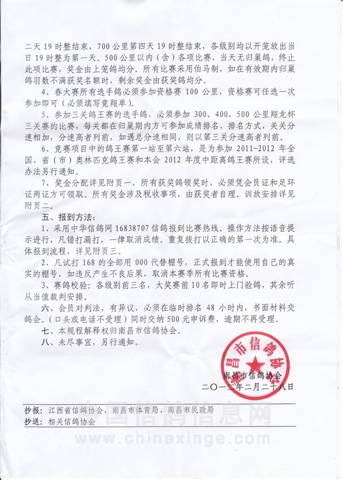 南昌市信鸽协会2012年竞翔规程及赛事安排