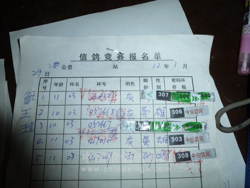 由于昨日工作疏忽漏掉张军华一羽参加双关鸽王赛赛鸽