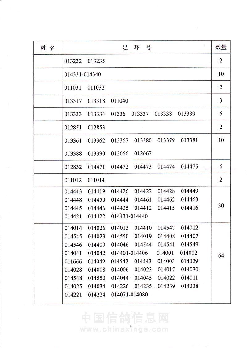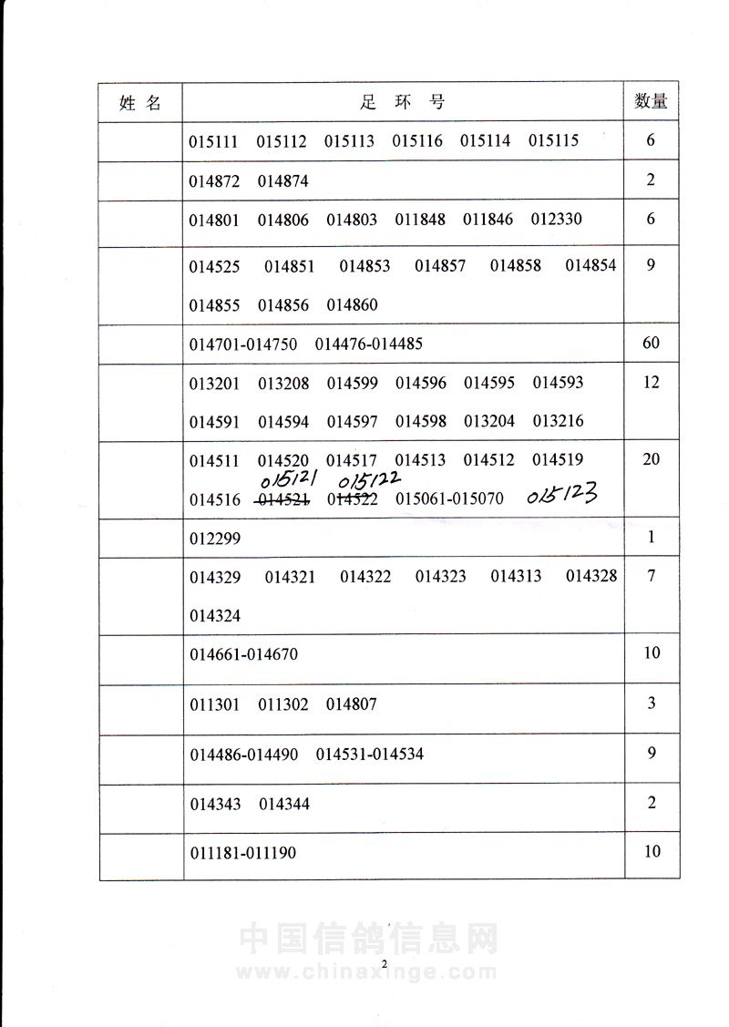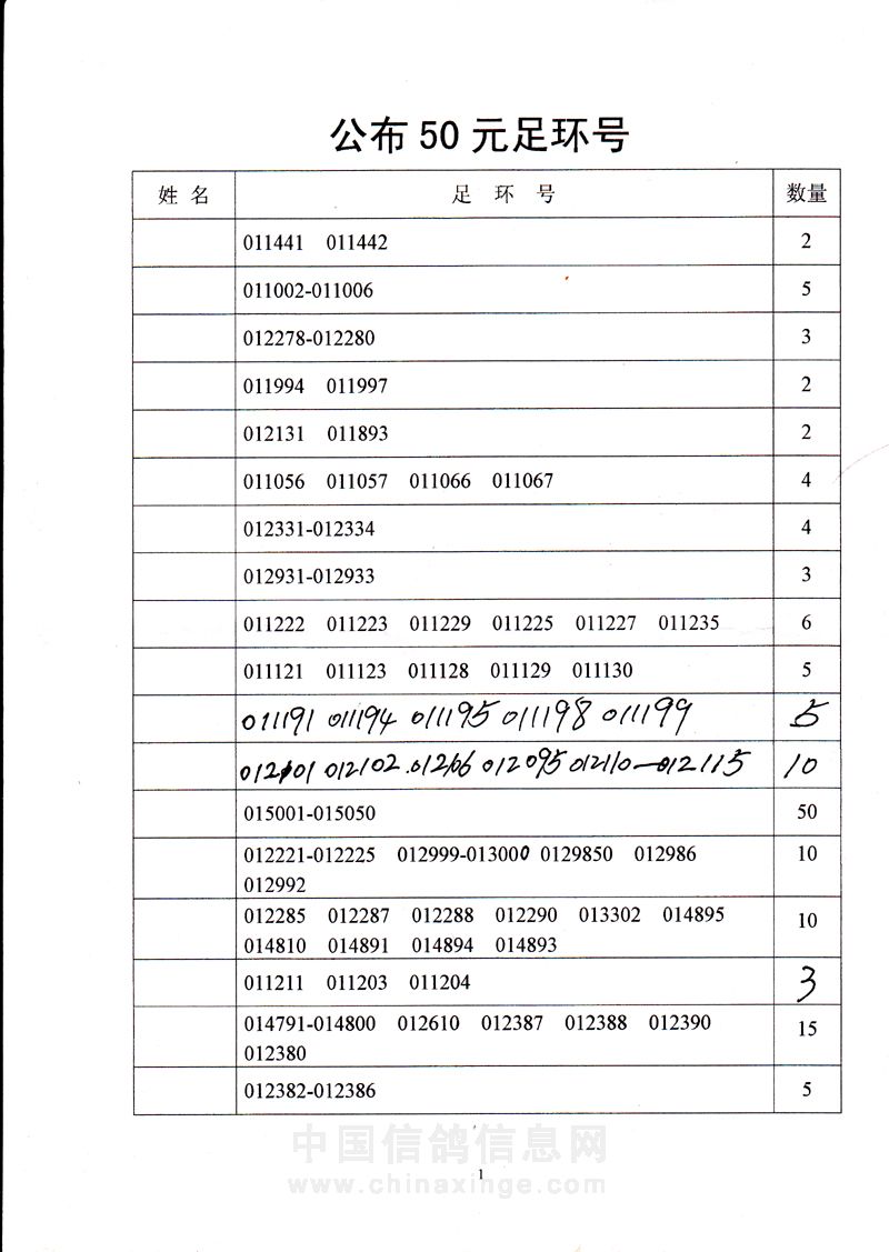 广西北海信鸽协会2012年下半年惠州50元组指定鸽名单