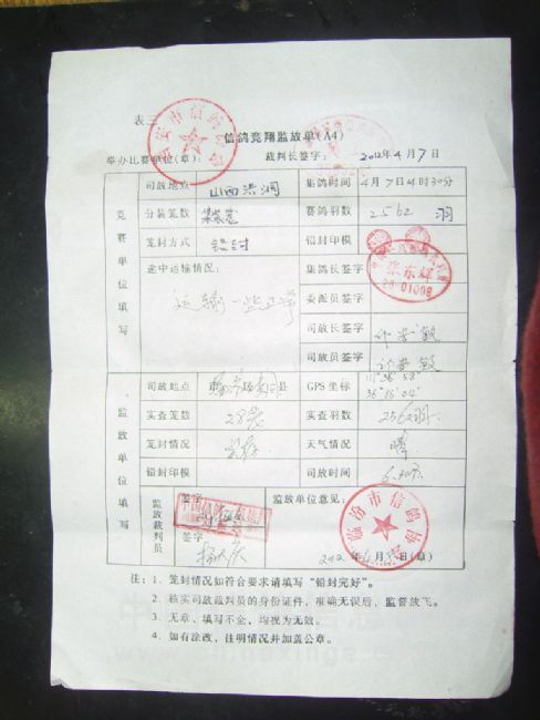2012年春赛300km放飞公图集