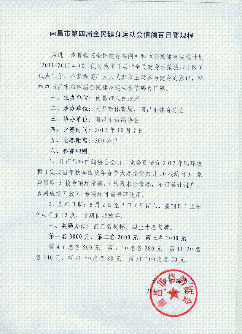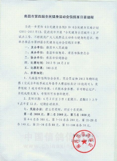 南昌市信鸽协会2024年秋季竟翔规程2