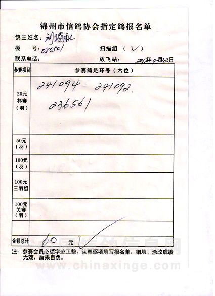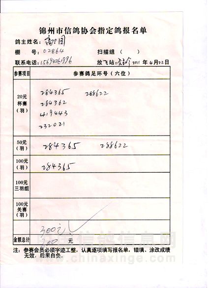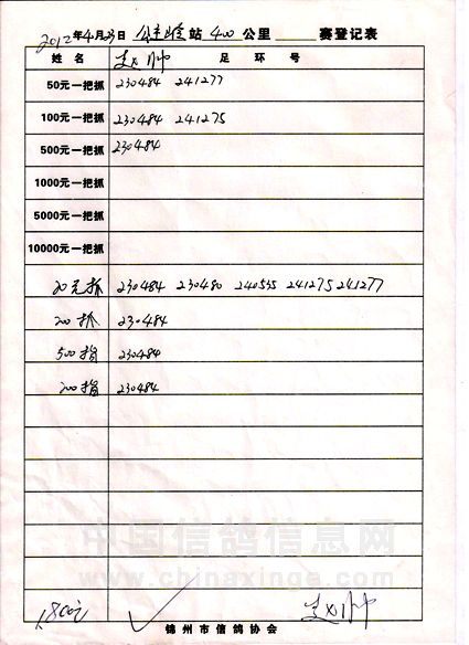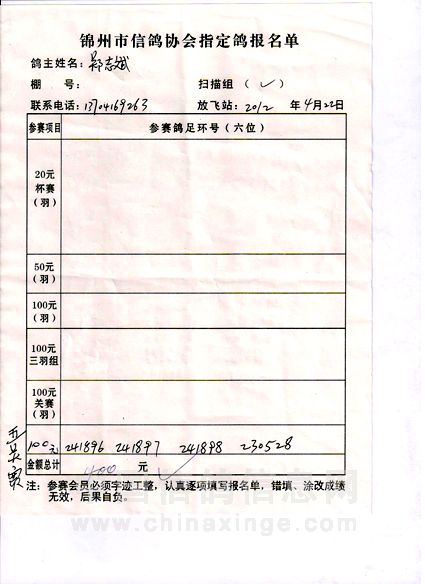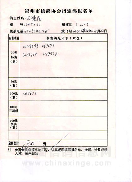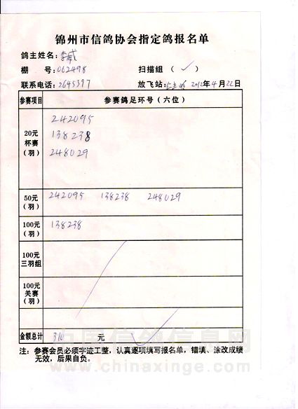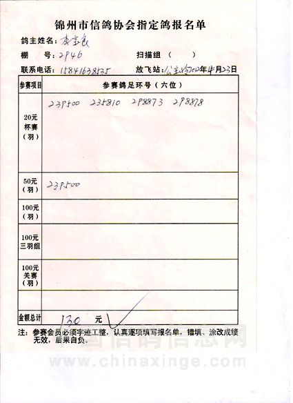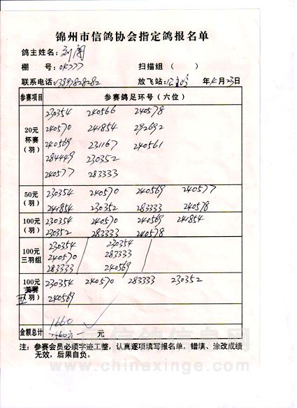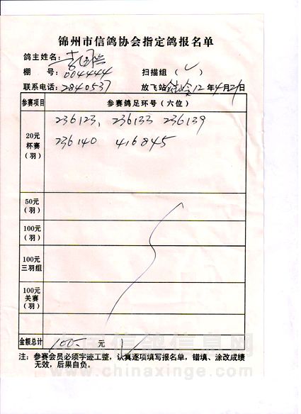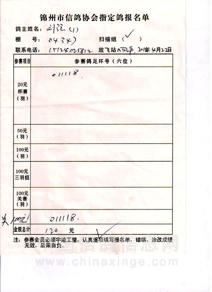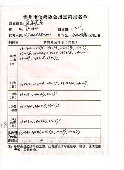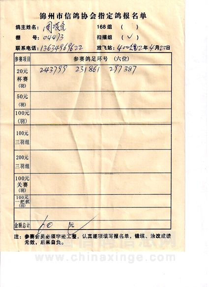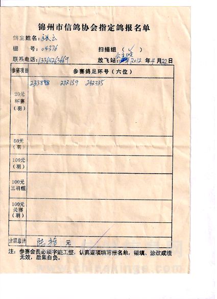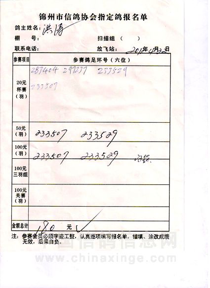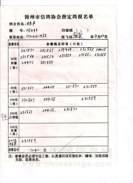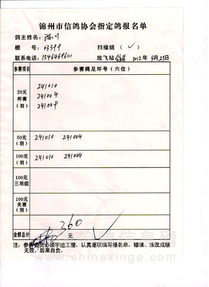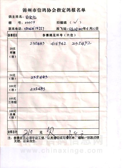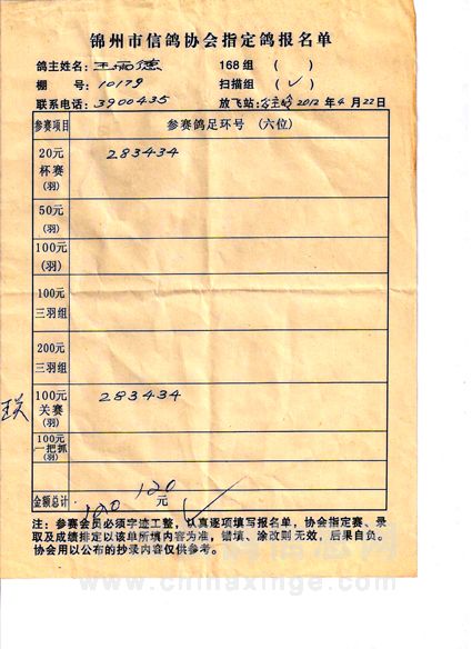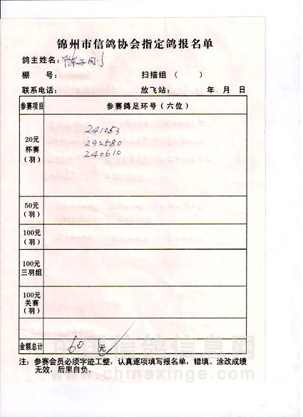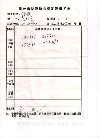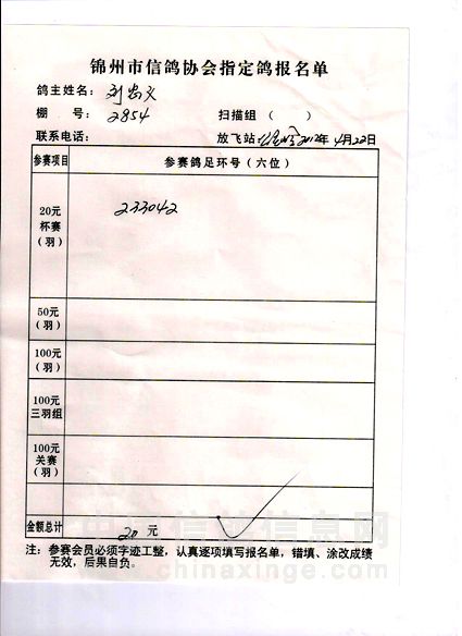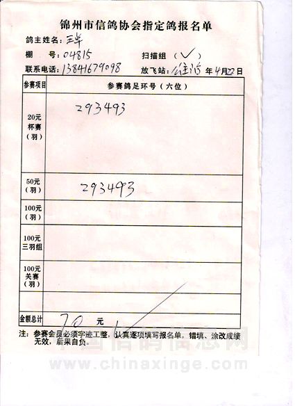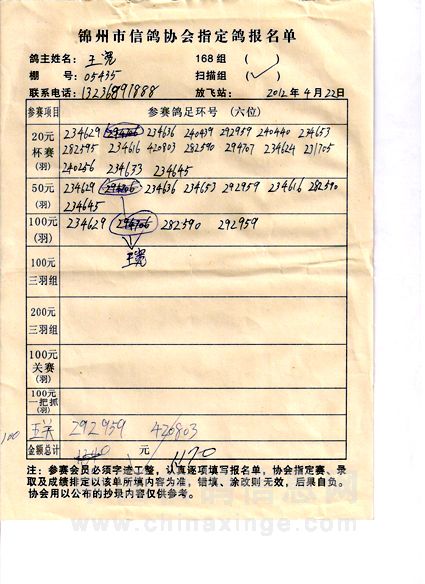 平翔信鸽俱乐部2021年秋季特比环截止1月4日售环2150枚