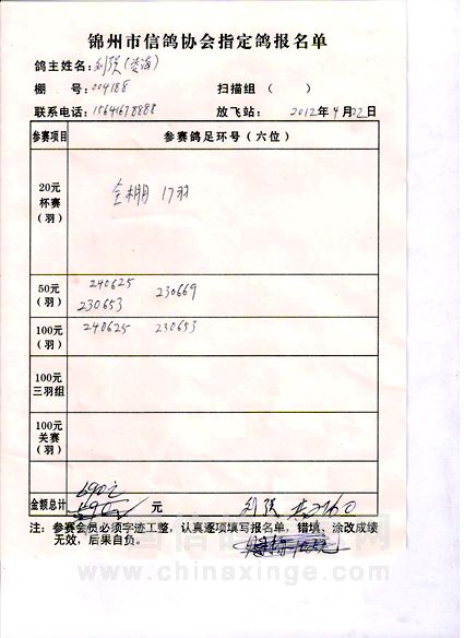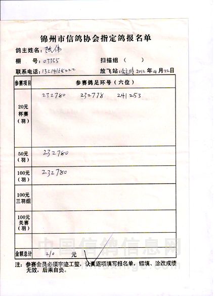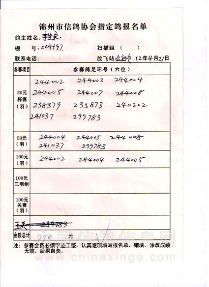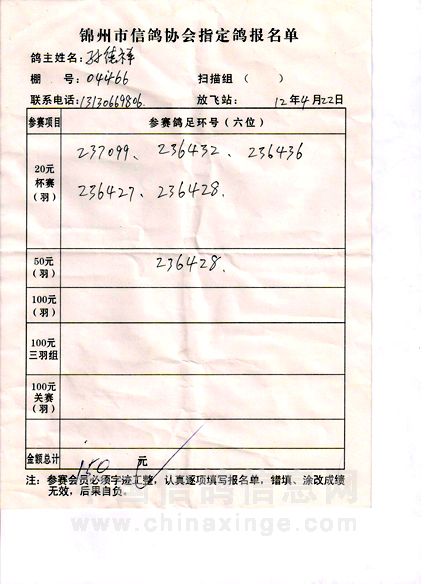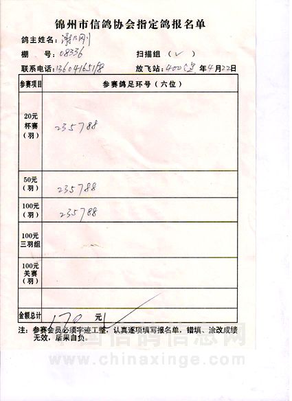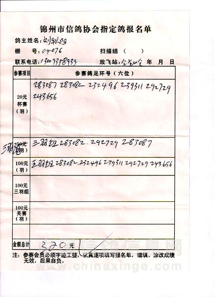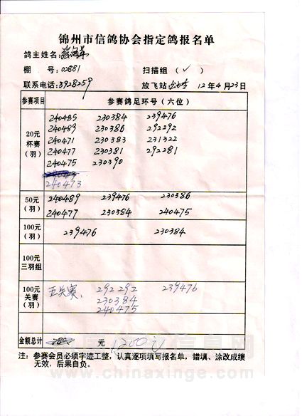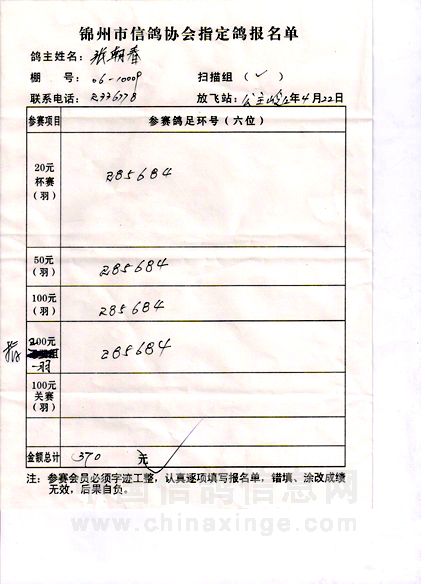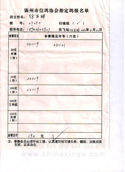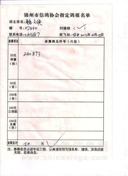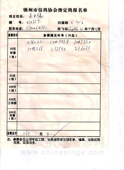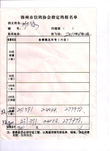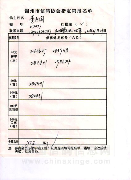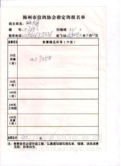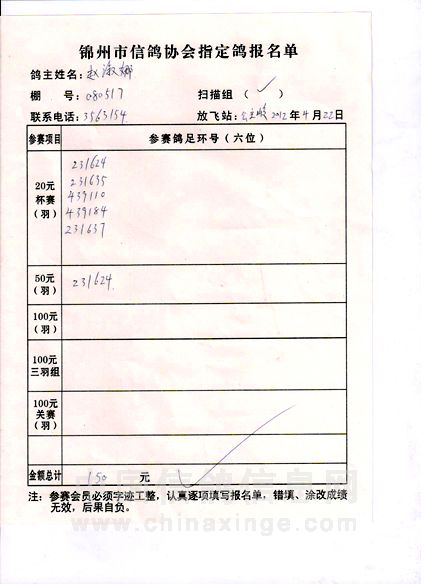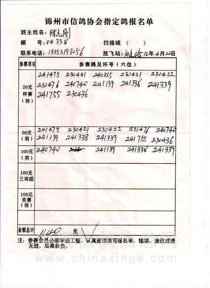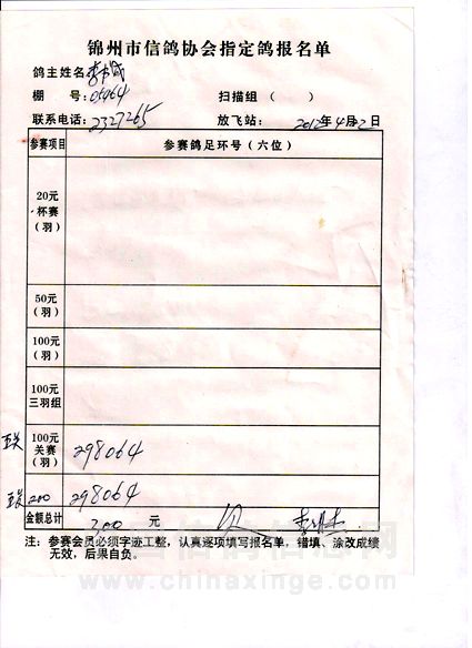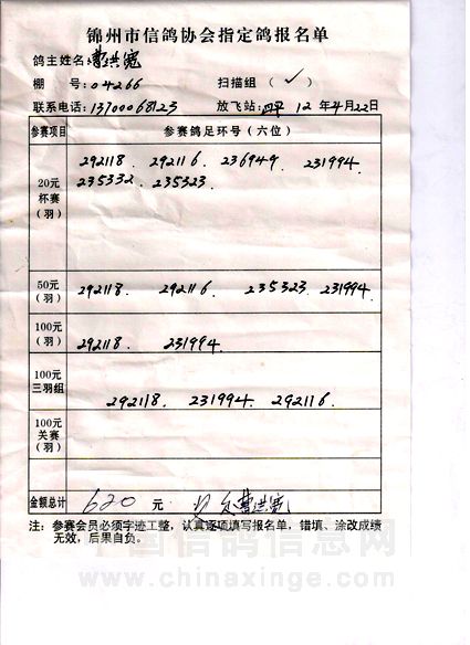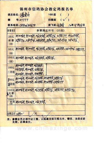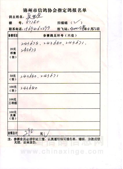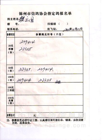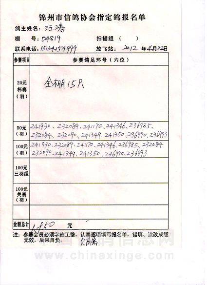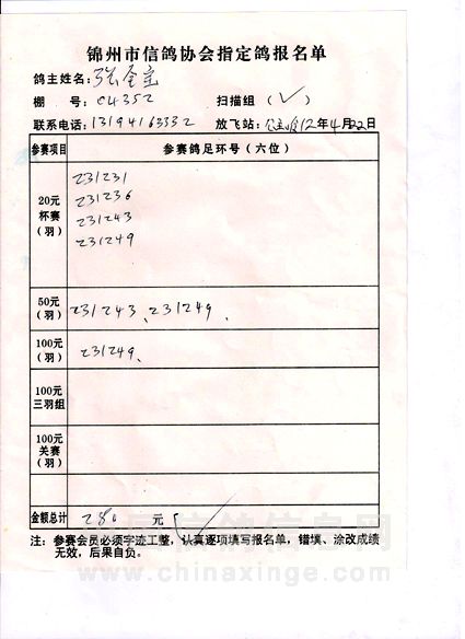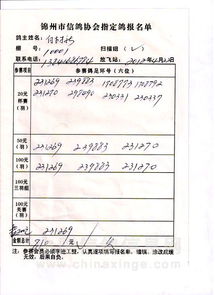 平翔信鸽俱乐部2021年秋季特比环截止1月4日售环2150枚