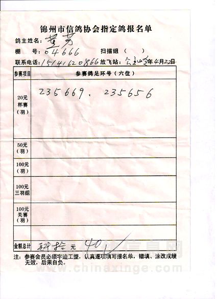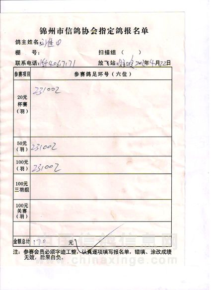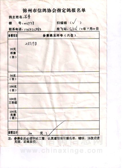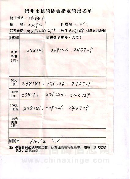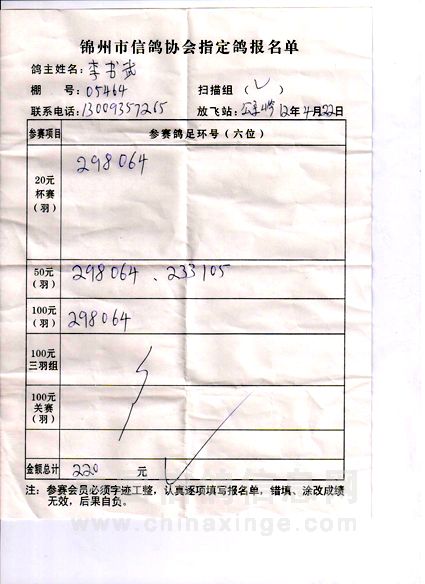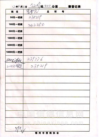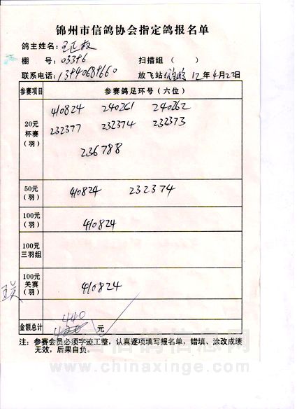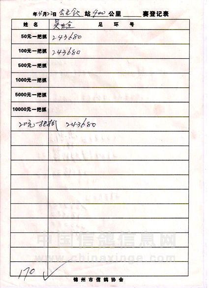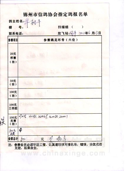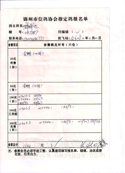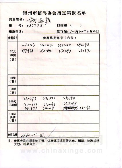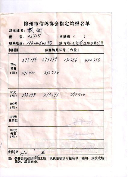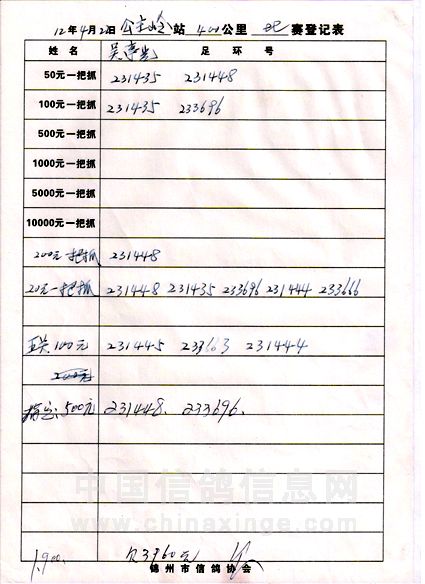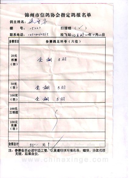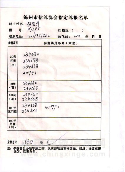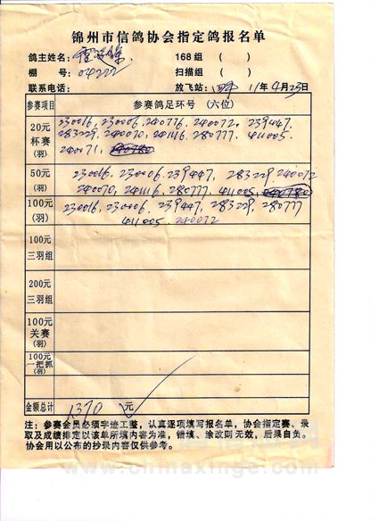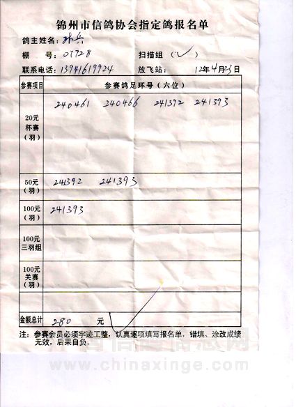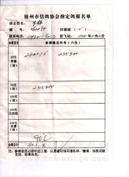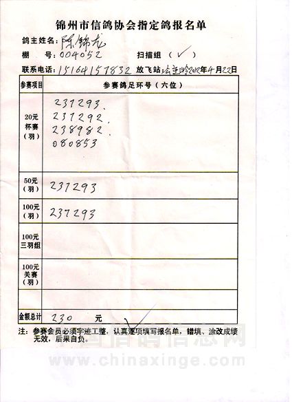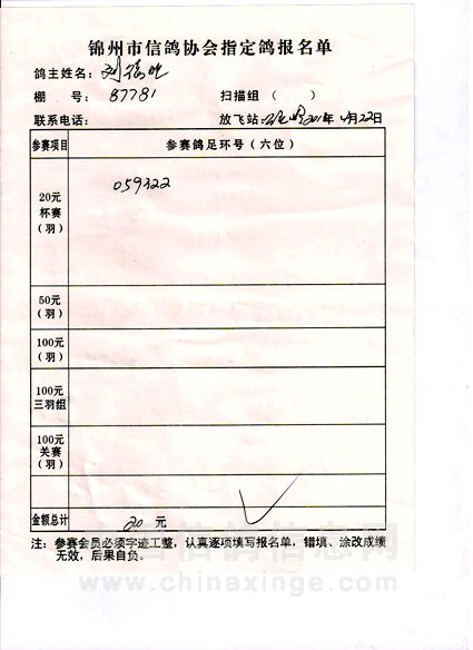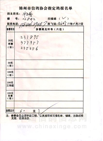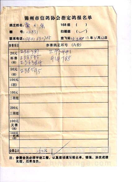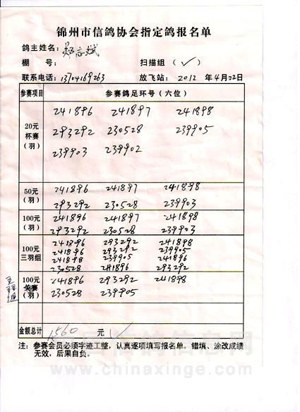 平翔信鸽俱乐部2021年秋季特比环截止1月4日售环2150枚