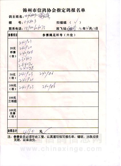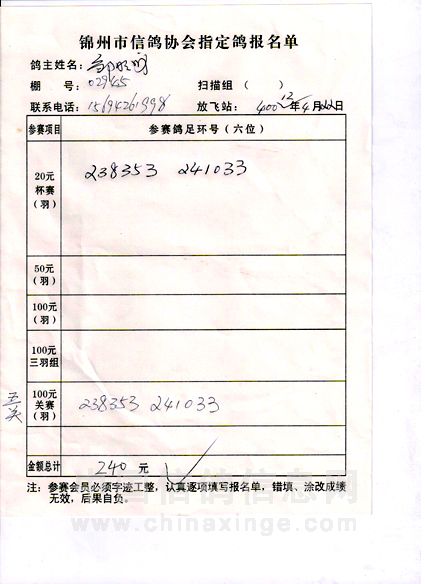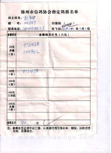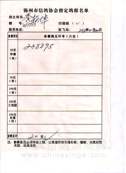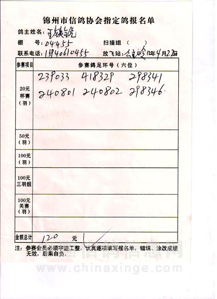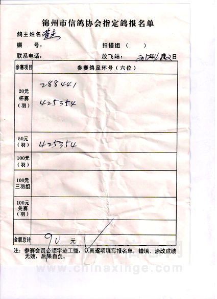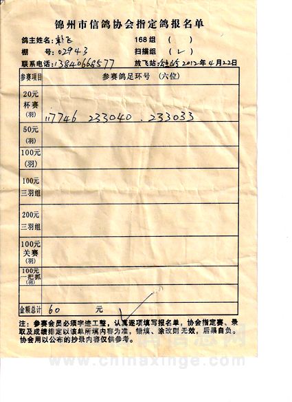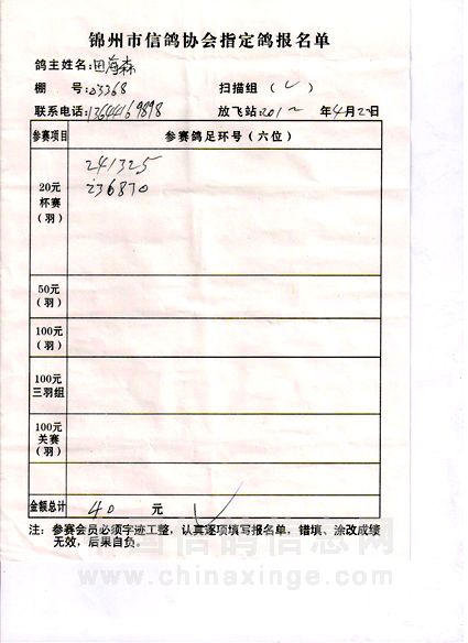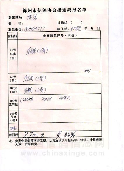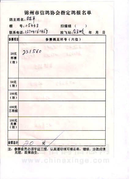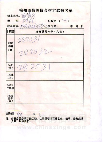 2021年平翔信鸽俱乐部秋季特比竞赛规程