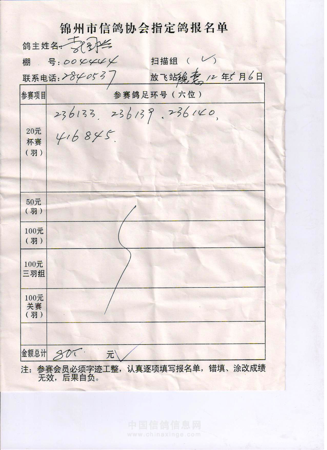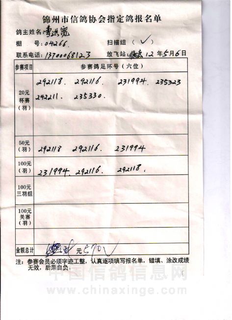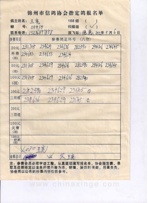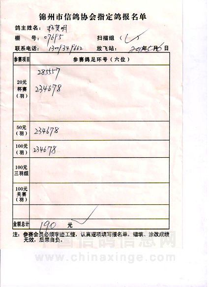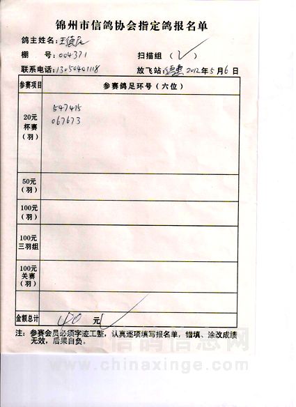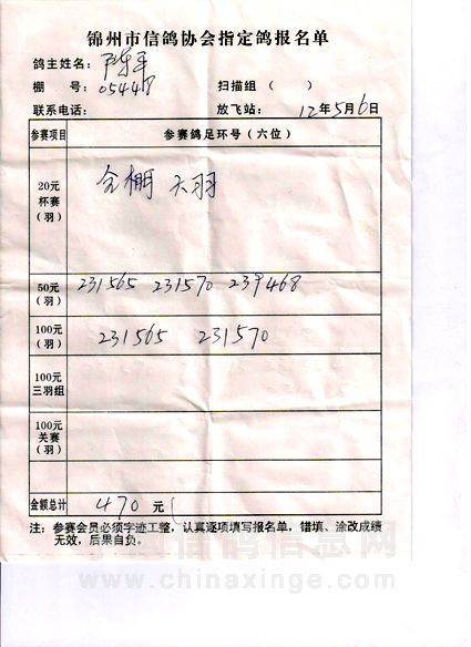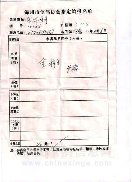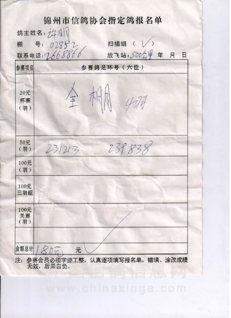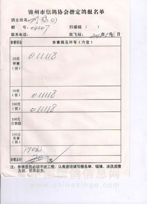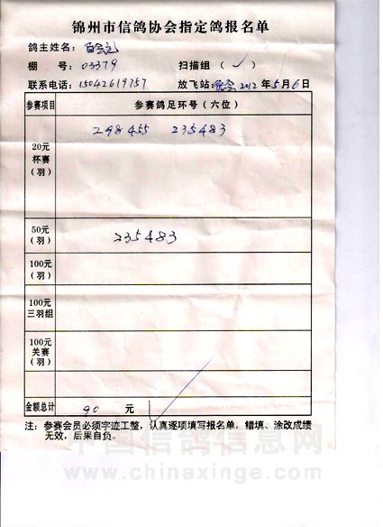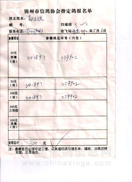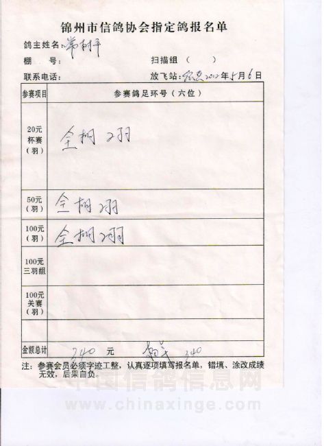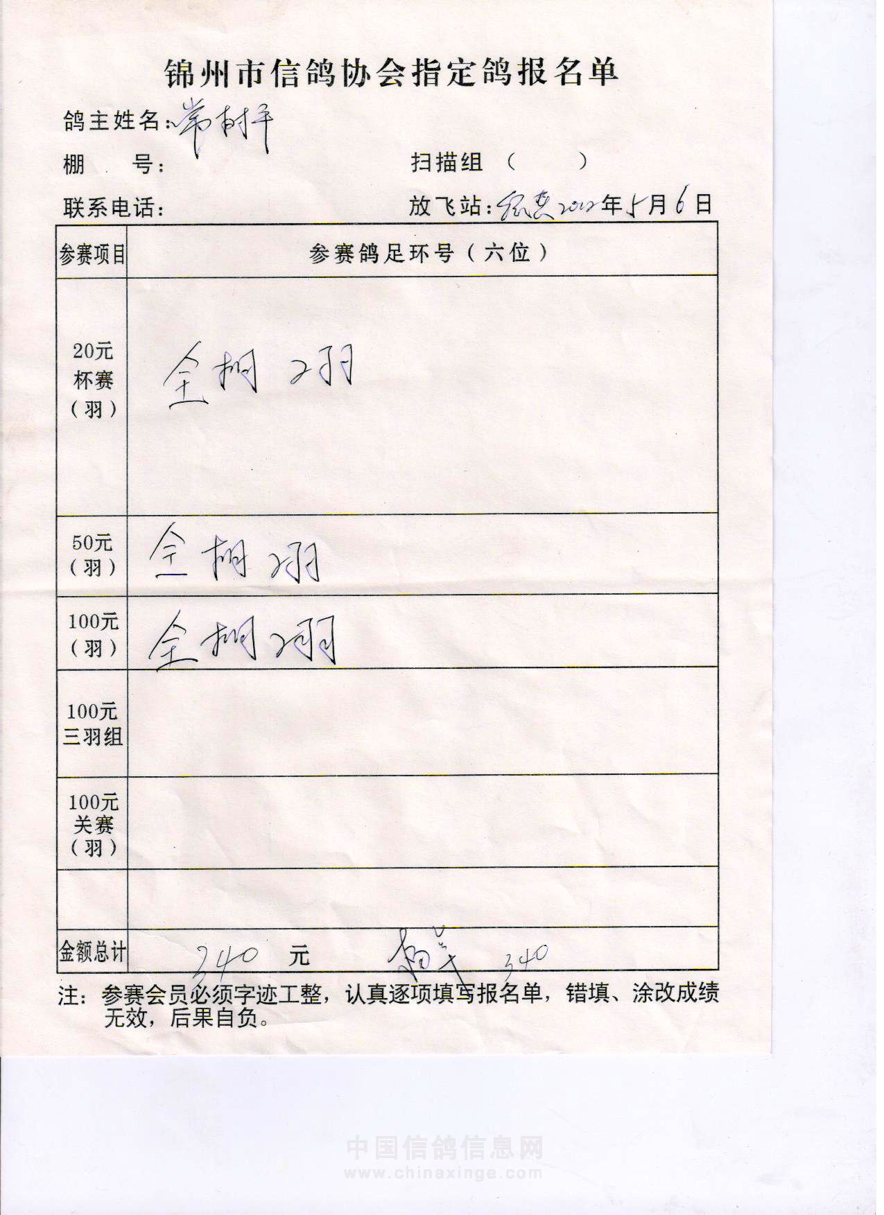 平翔信鸽俱乐部2021年秋季特比环截止1月4日售环2150枚