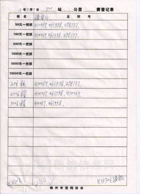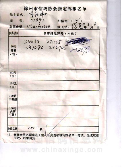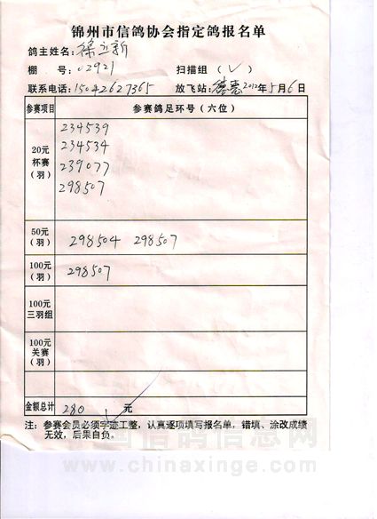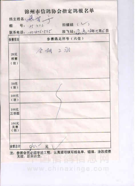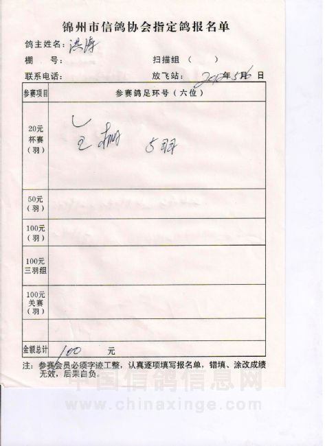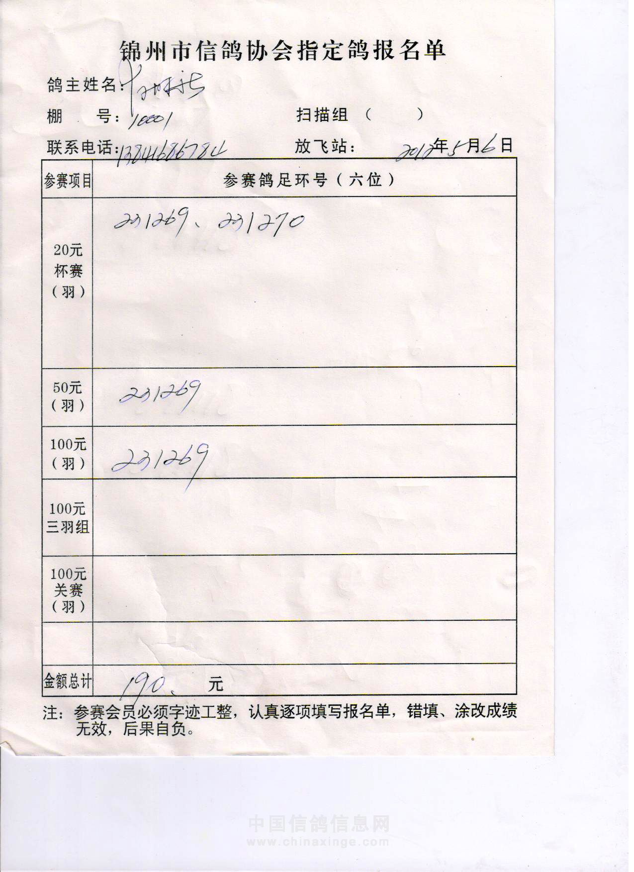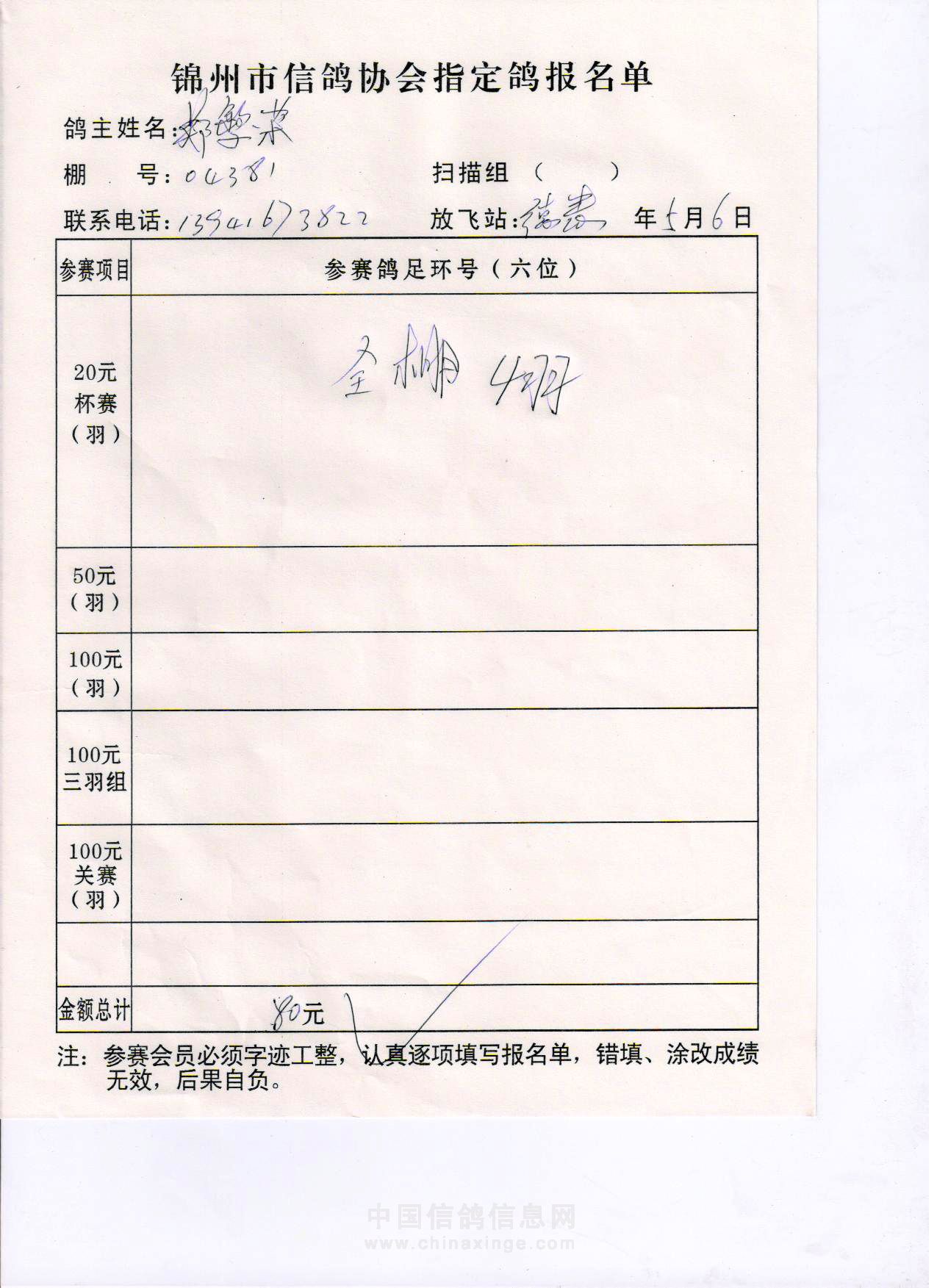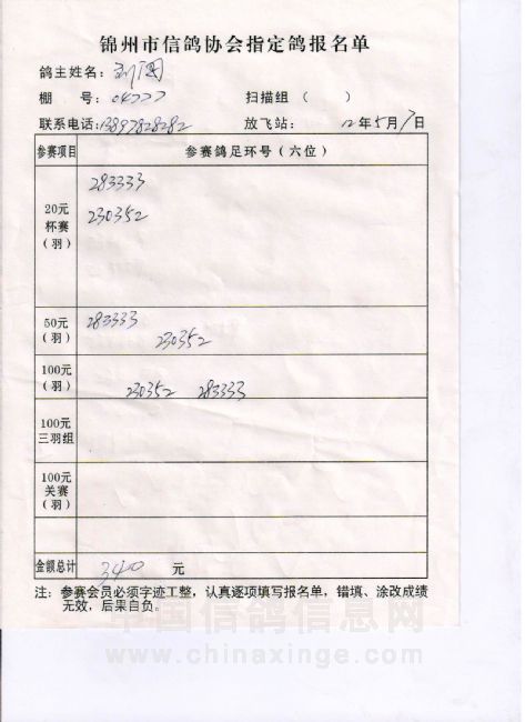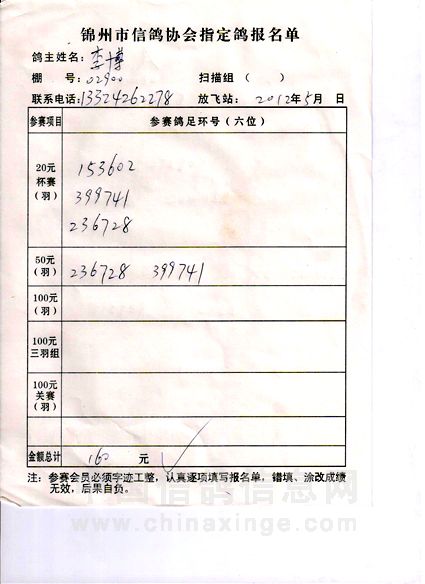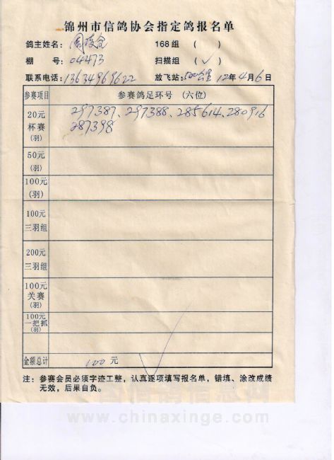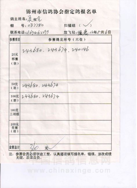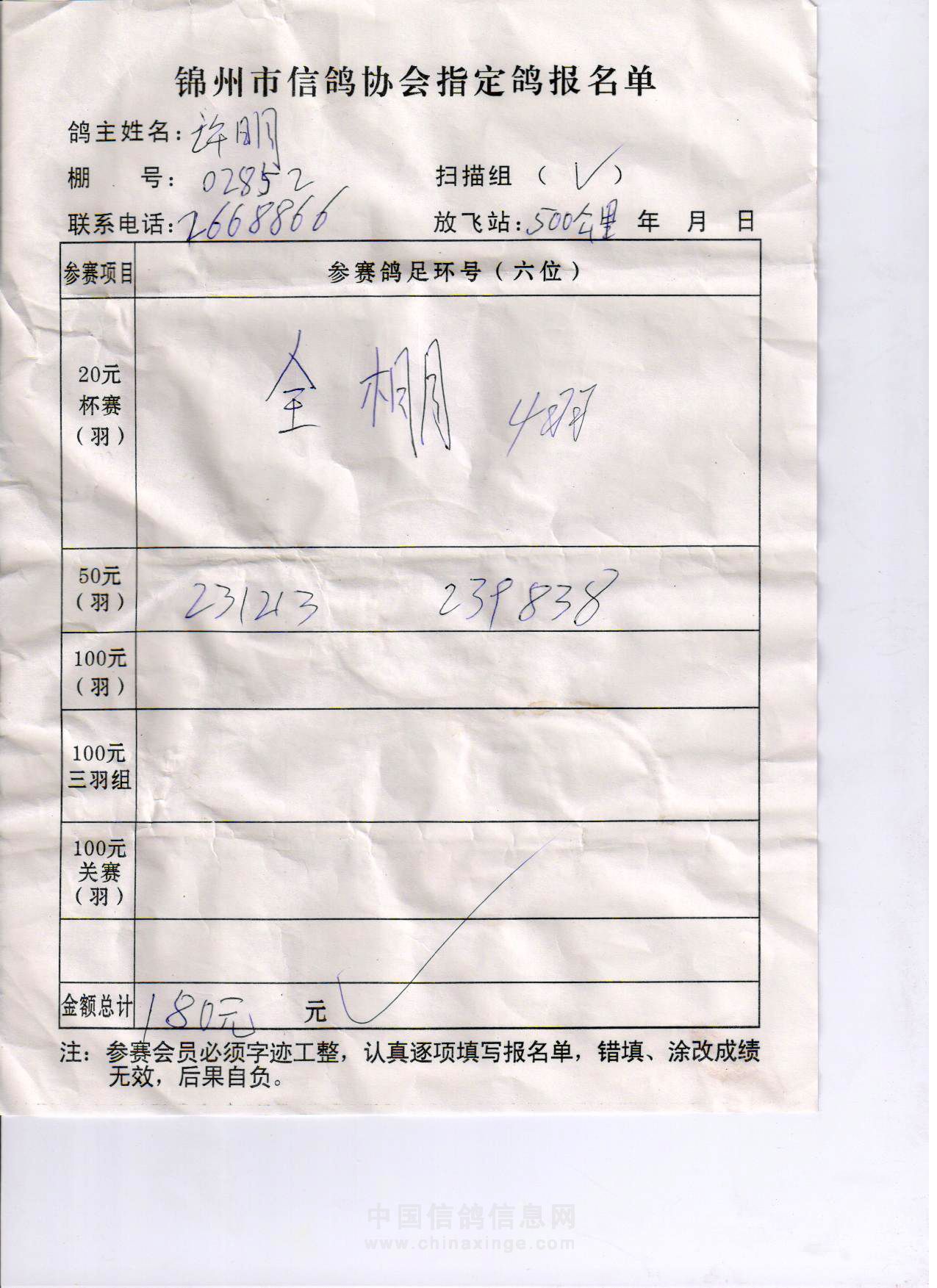 平翔信鸽俱乐部2021年秋季特比环截止1月4日售环2150枚