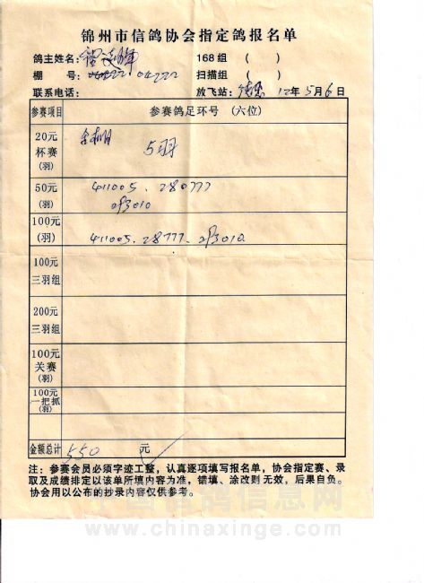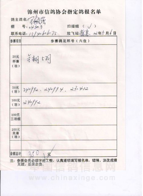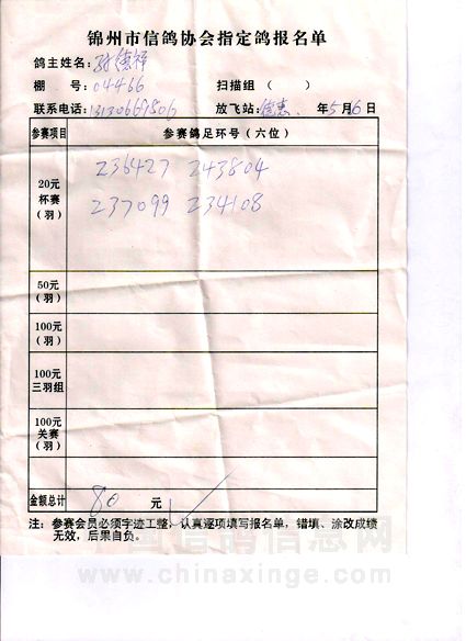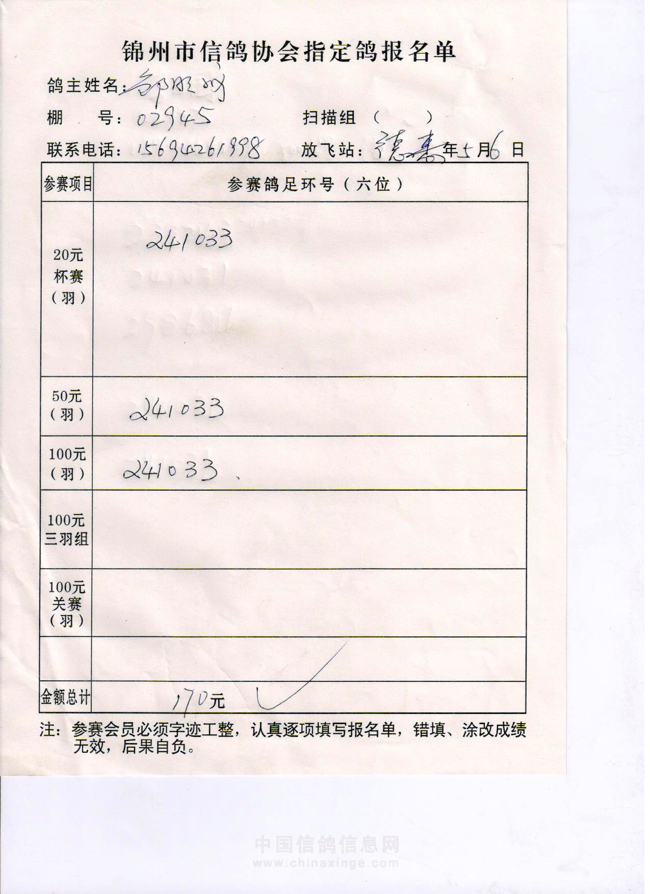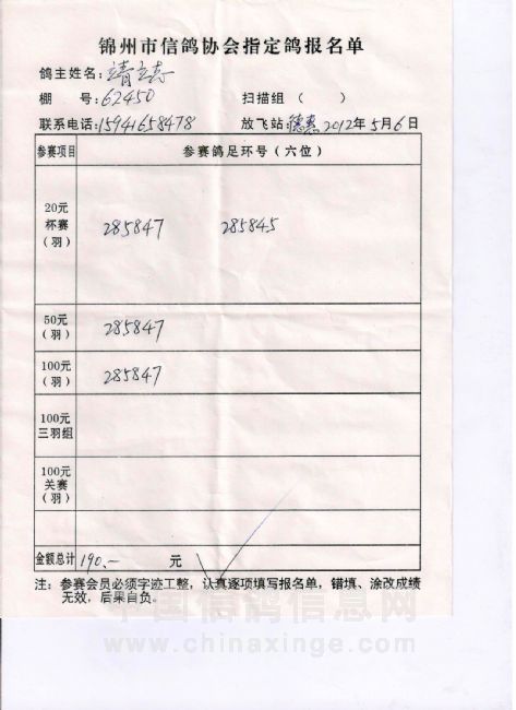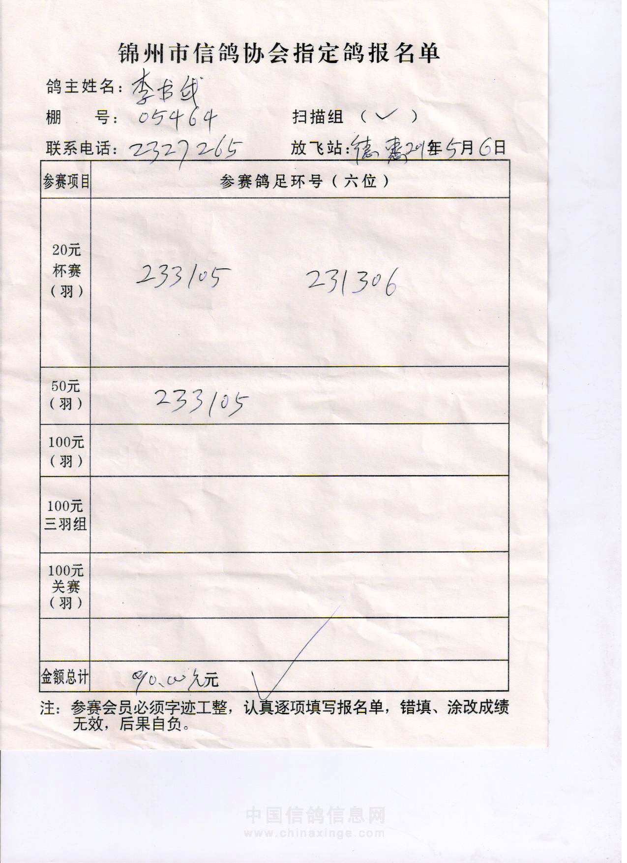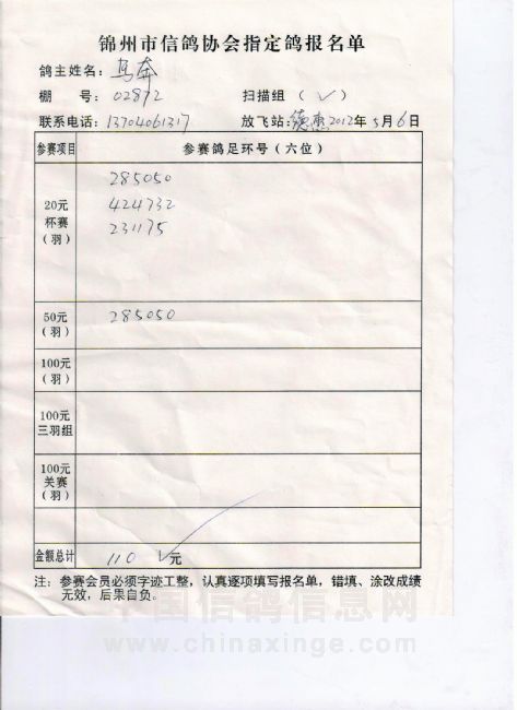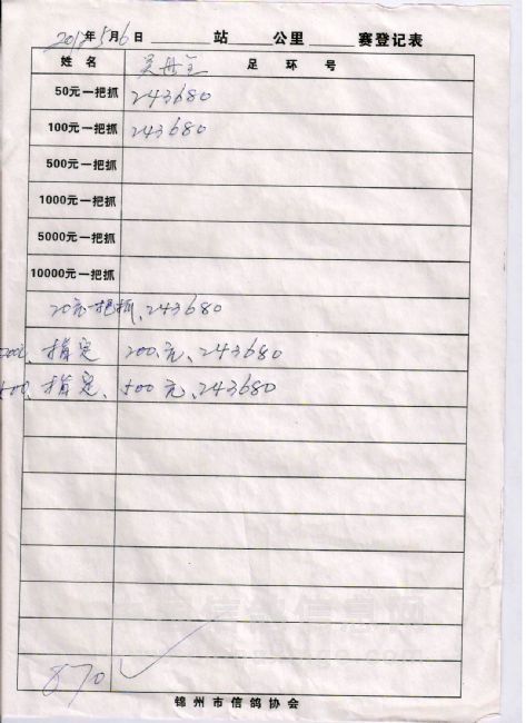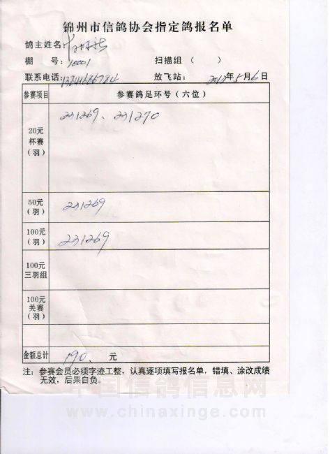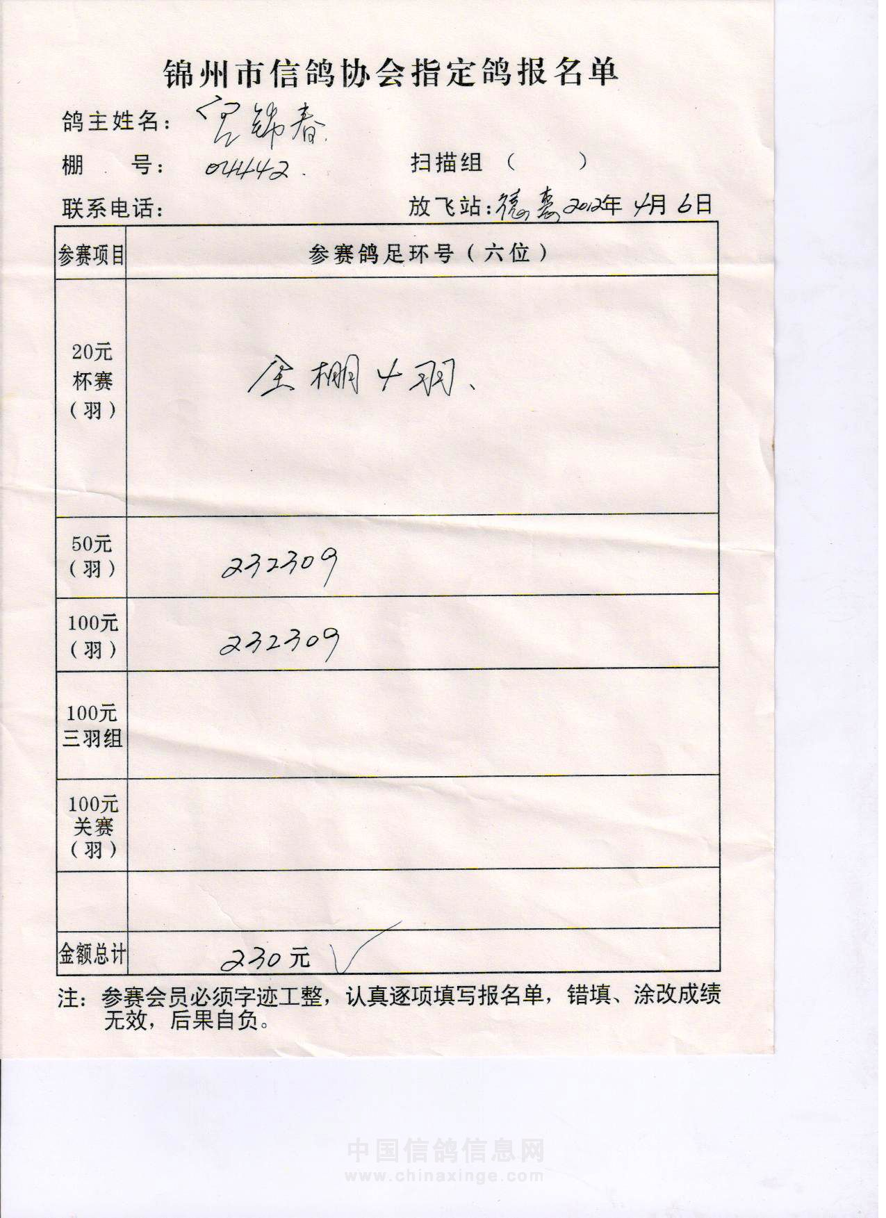 平翔信鸽俱乐部2021年秋季特比环截止1月4日售环2150枚