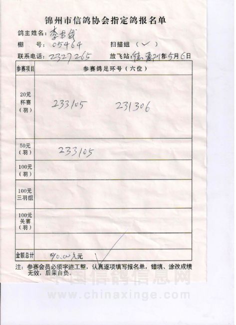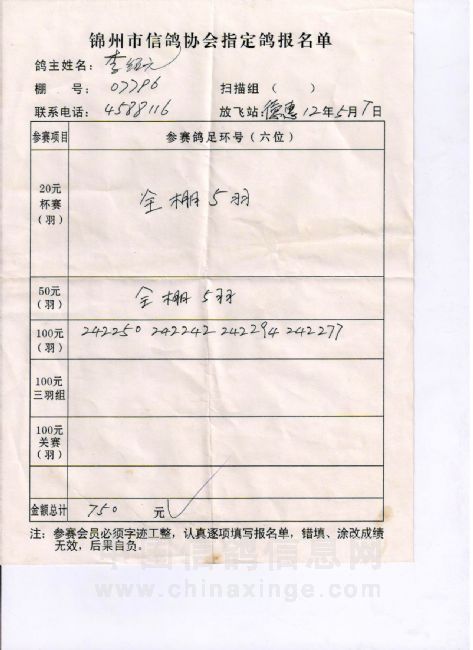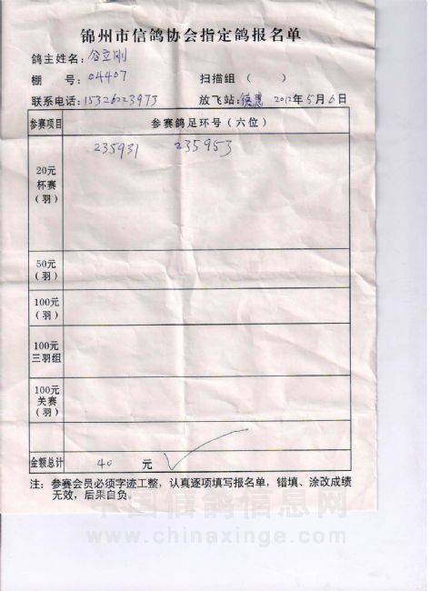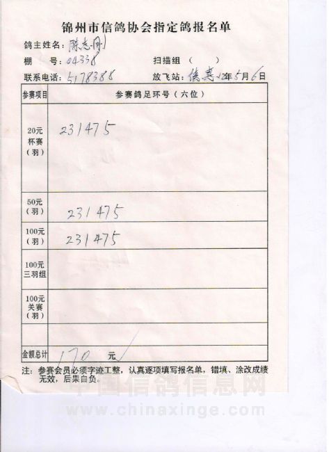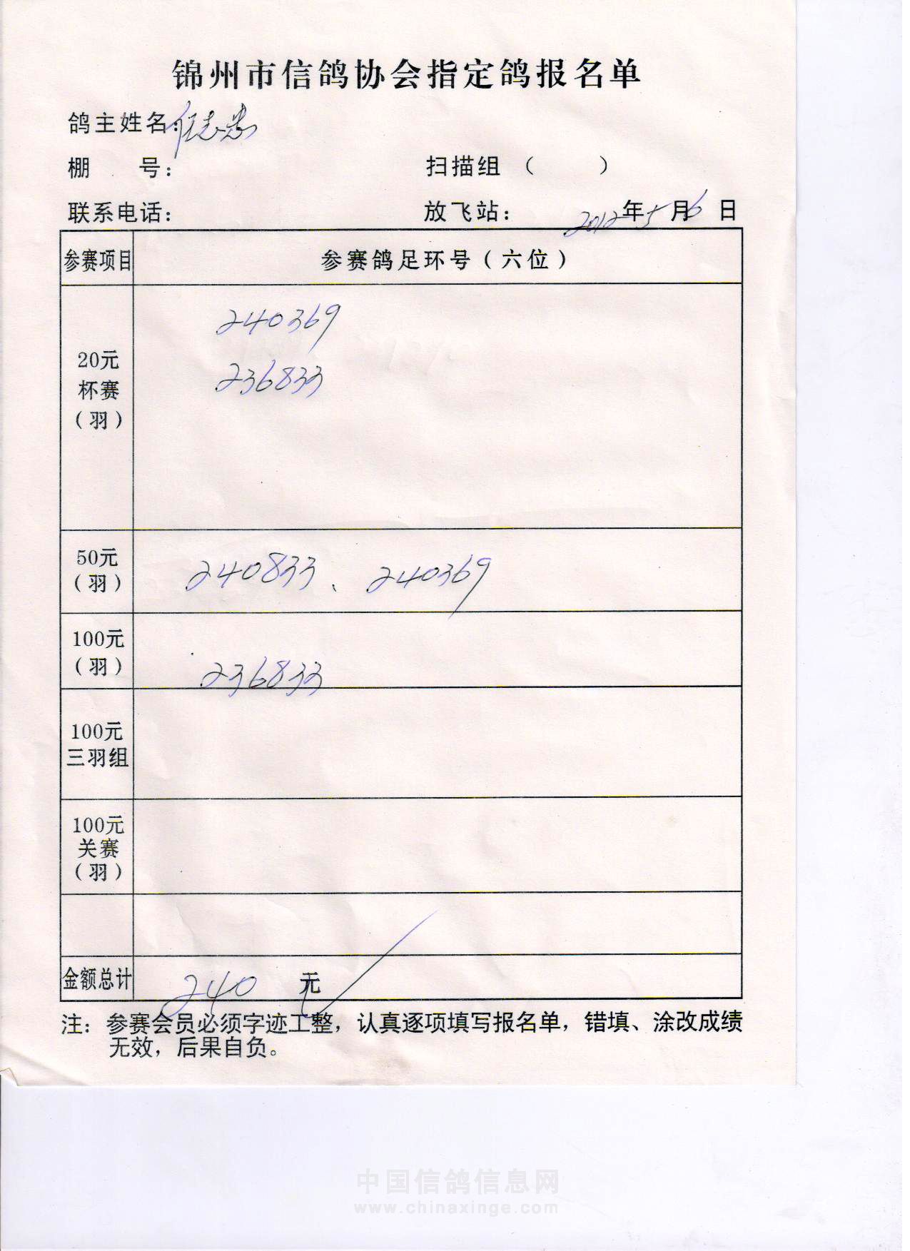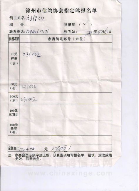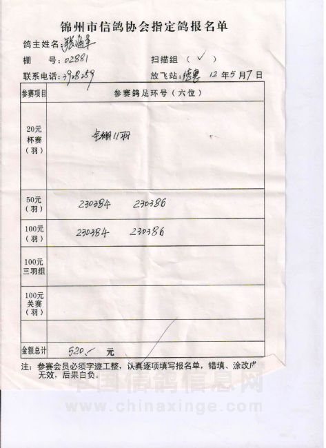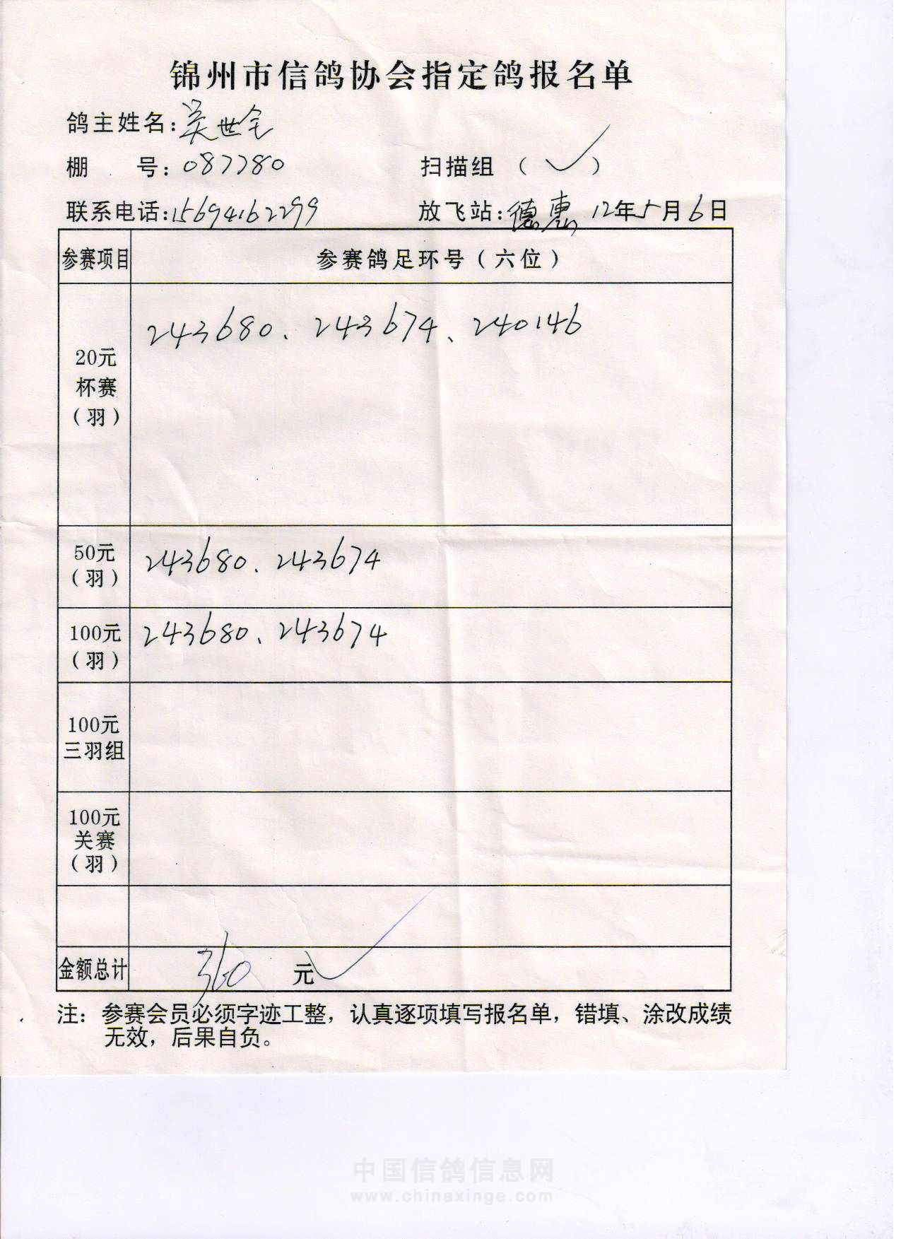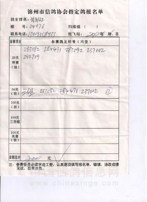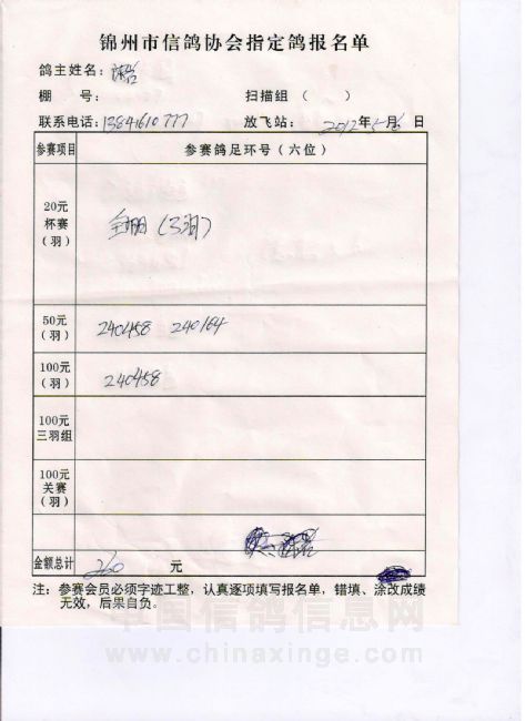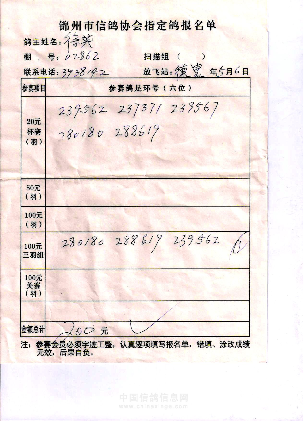 平翔信鸽俱乐部2021年秋季特比环截止1月4日售环2150枚