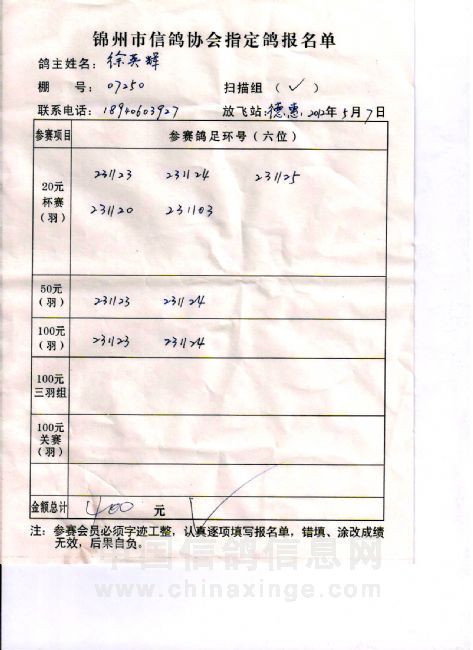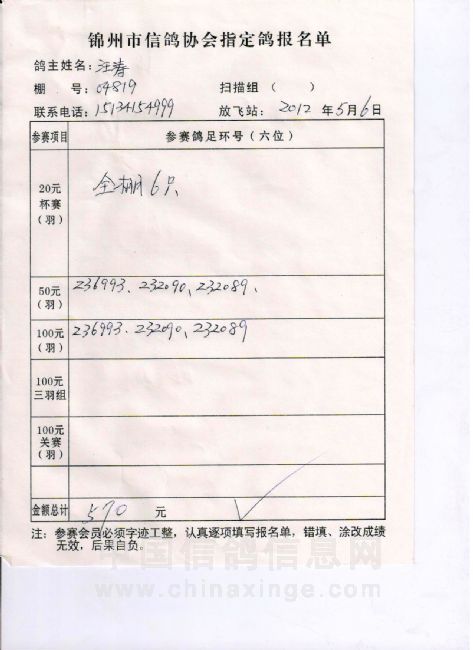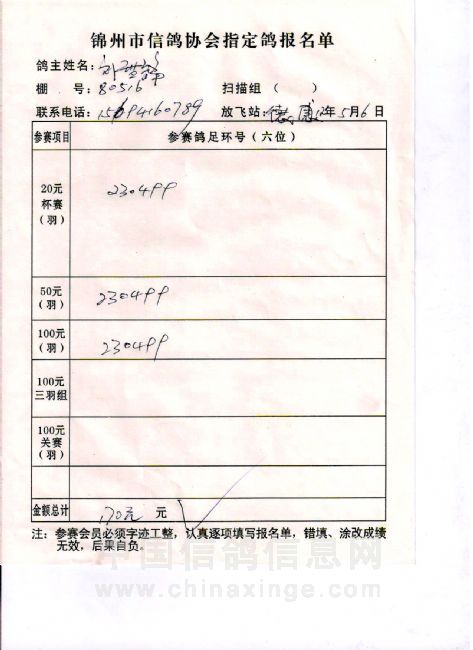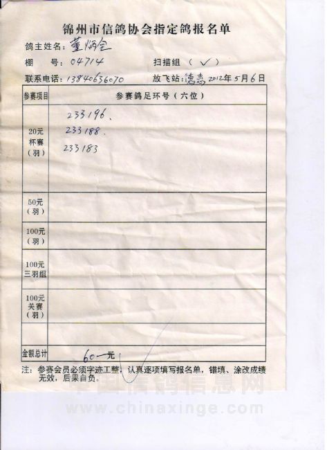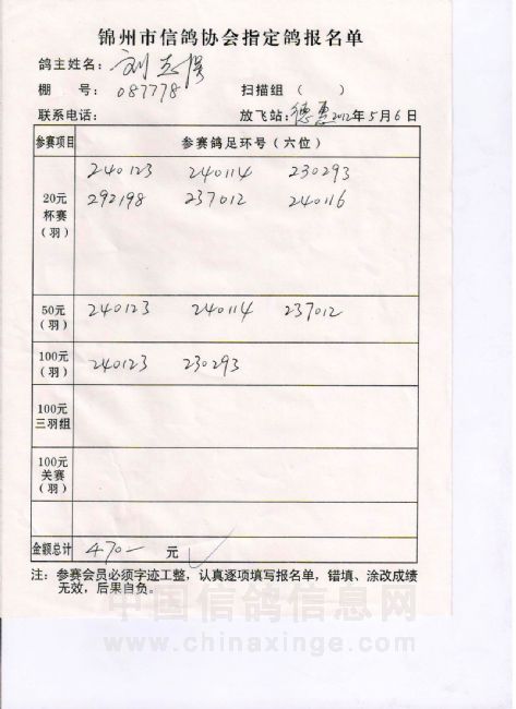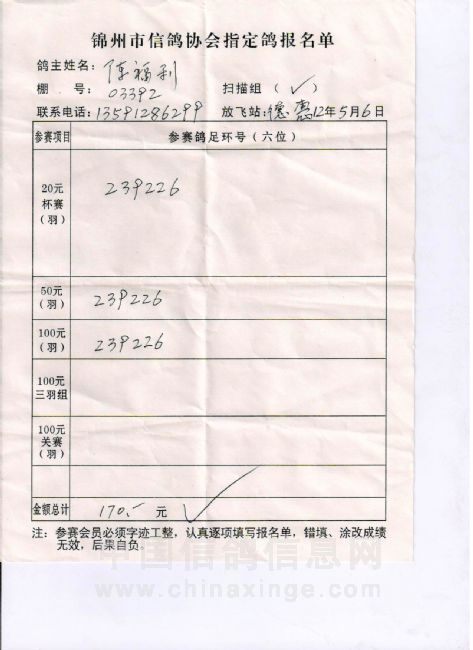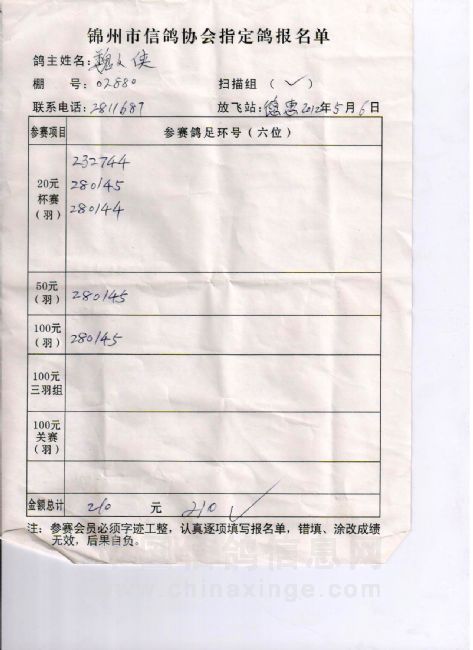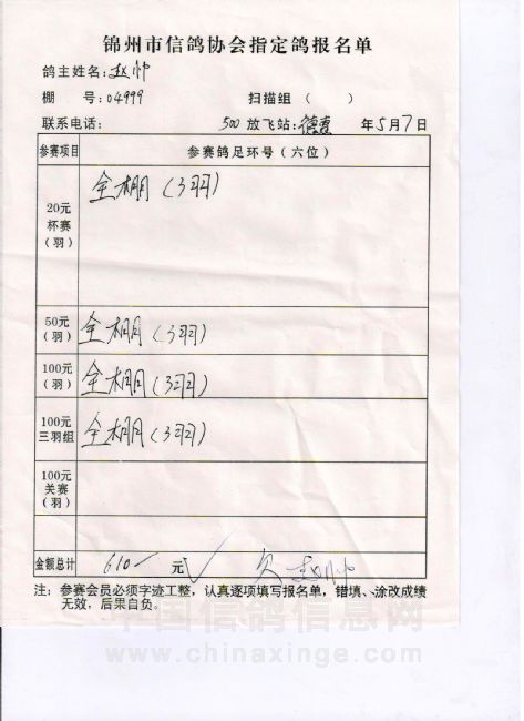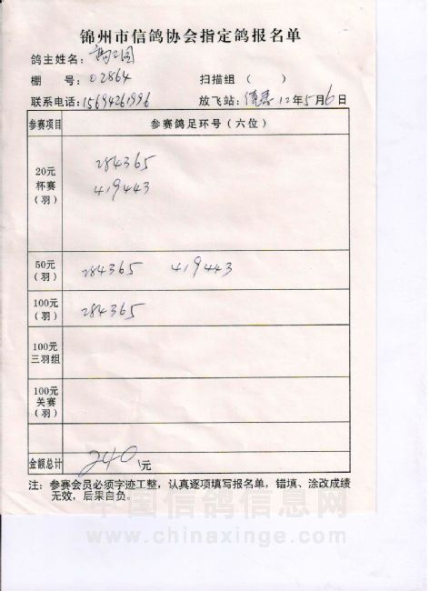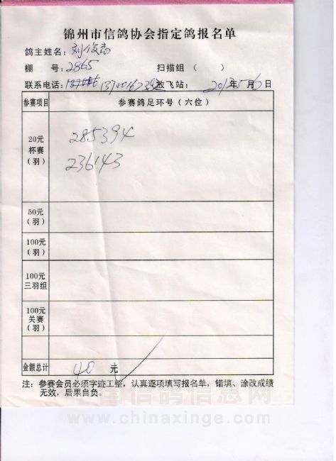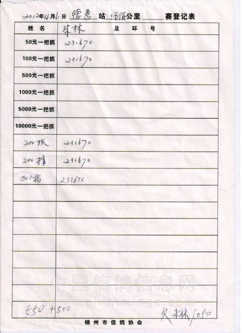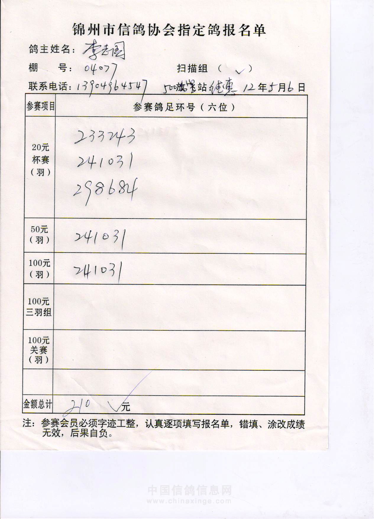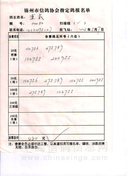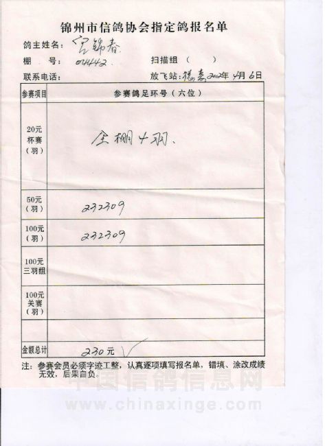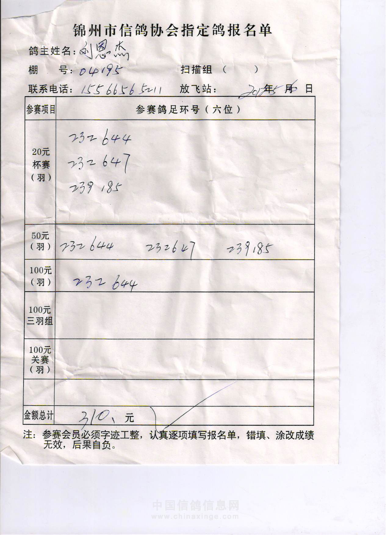 平翔信鸽俱乐部2021年秋季特比环截止1月4日售环2150枚