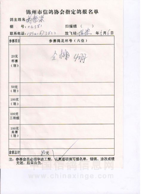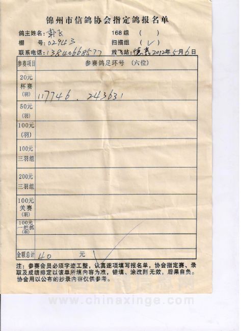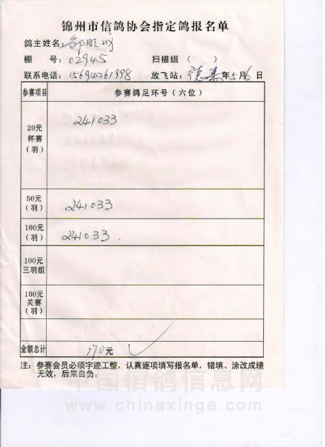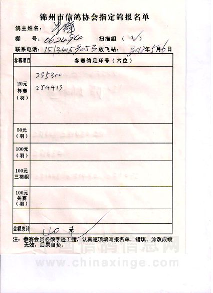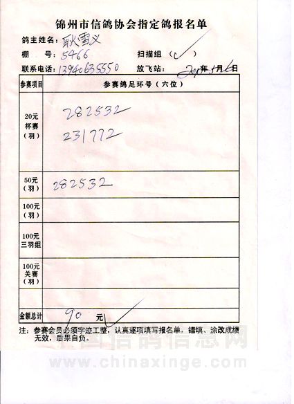 2021年平翔信鸽俱乐部秋季特比竞赛规程