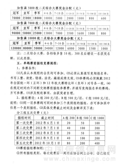 2012年秋大赛单鸽赛前暗插报名单填写格式:除眼砂、性别、羽色不填写外,其他严格按照参赛报名单规则填写,并在备注栏填写插组类别。