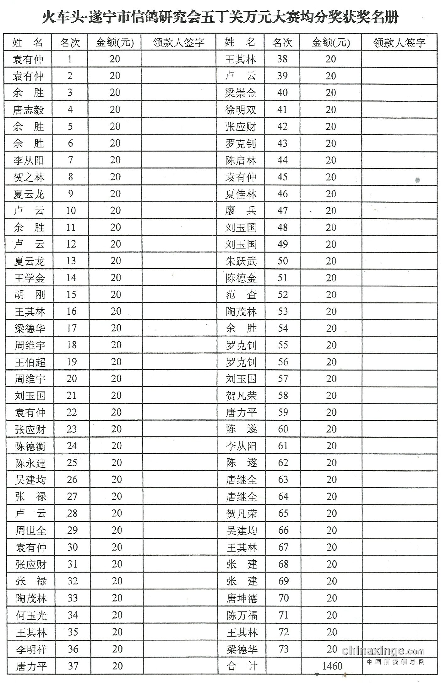 五丁关奖金分配花名册