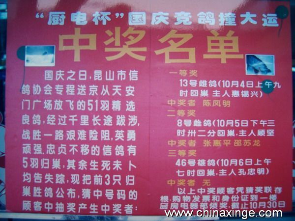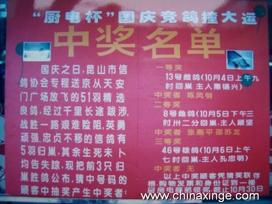 25年来,昆山新老鸽友见证了鸽协发展的点点滴滴:会员人数从少到多,活动场所从无到有,经费实力从弱到强,赛鸽车的添置,报到办法的升级改进,活动的内容从单一到丰富,各种赛事优胜纪录不断产生、刷新-------,这些都是鸽协发展的里程碑,成为我们最值得记叙的文字,记录着昆山鸽友的快乐、自豪和感动。