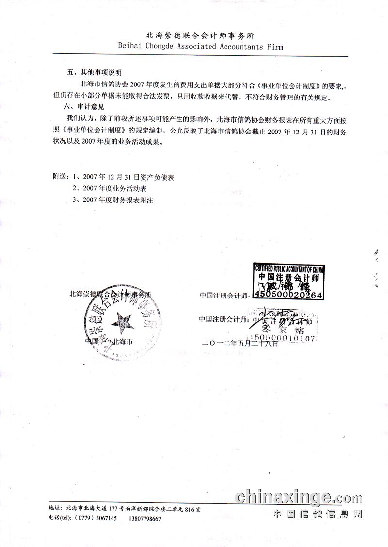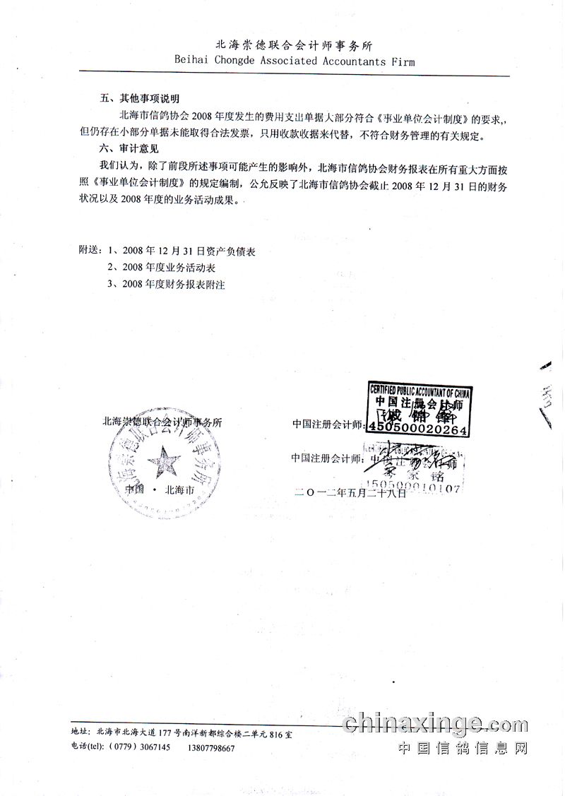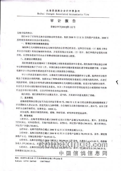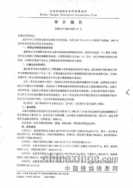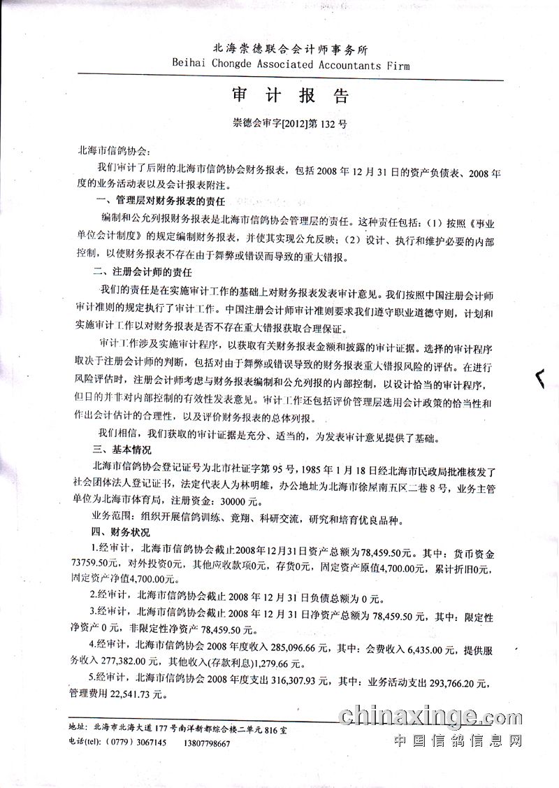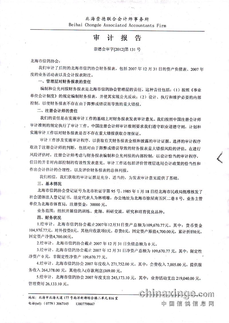 关于主管部对北海市信鸽协会财务审计公告