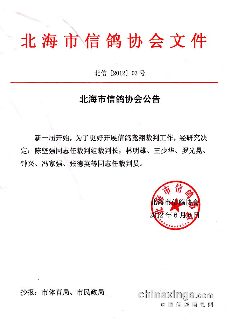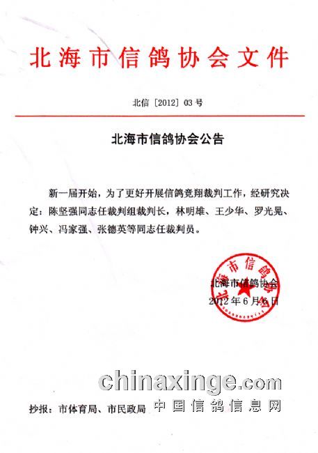 广西北海市信鸽协会最新公告