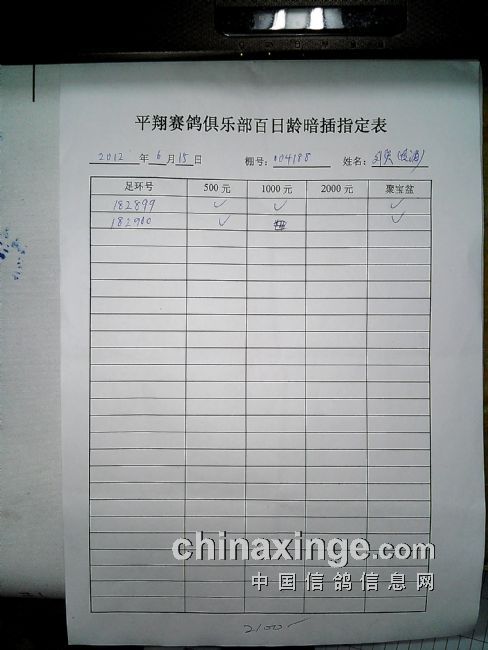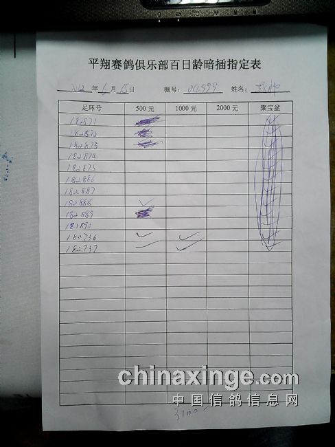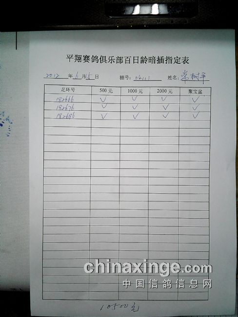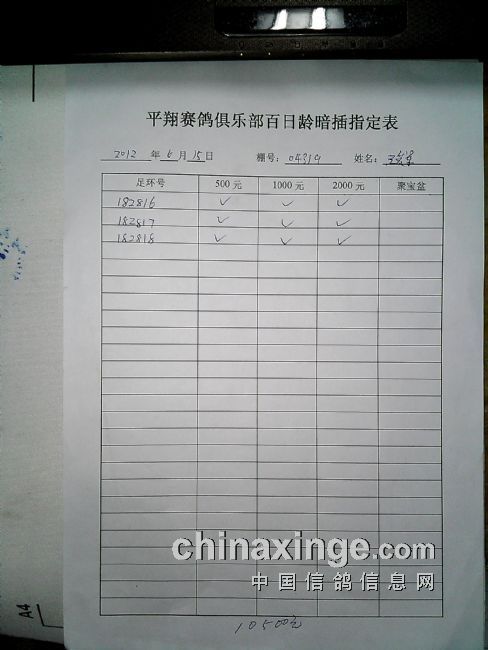 平翔信鸽俱乐部2021年秋季特比环截止1月4日售环2150枚