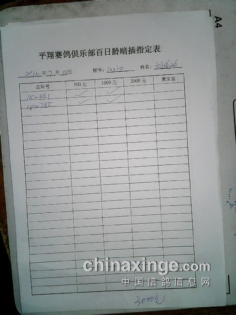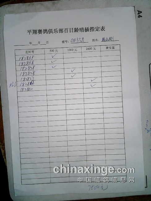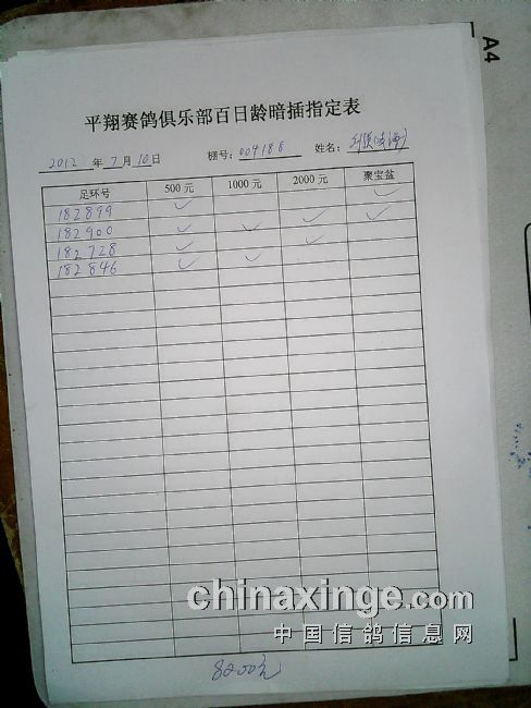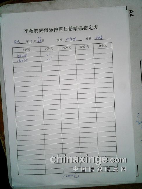 平翔信鸽俱乐部2021年秋季特比环截止1月4日售环2150枚
