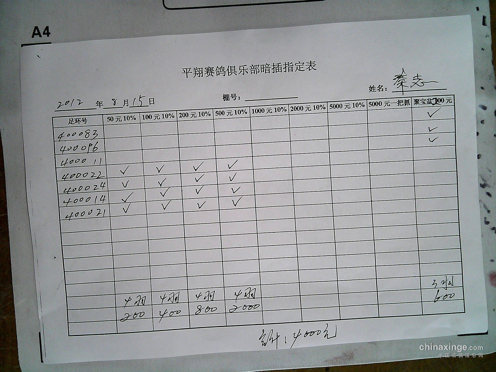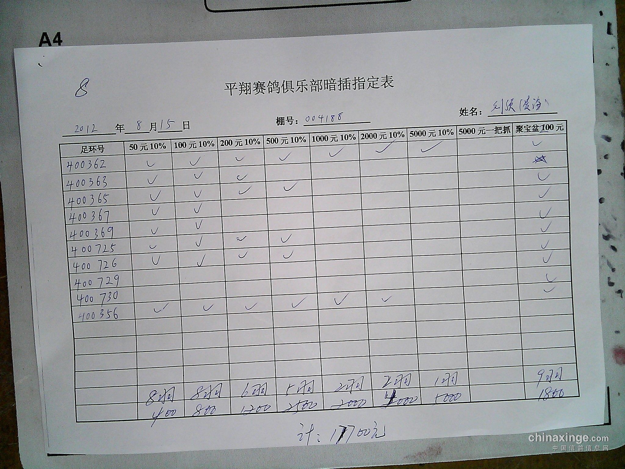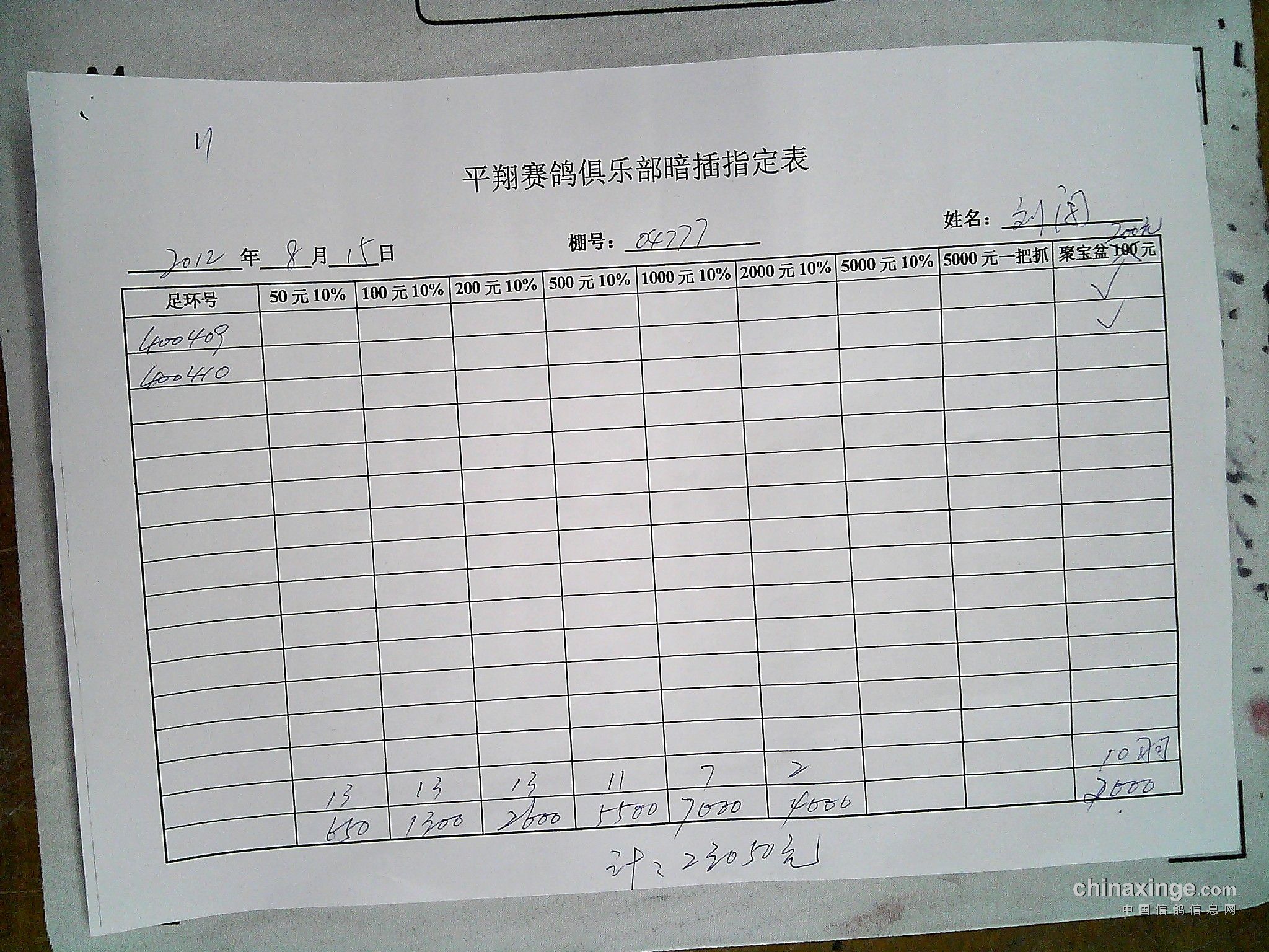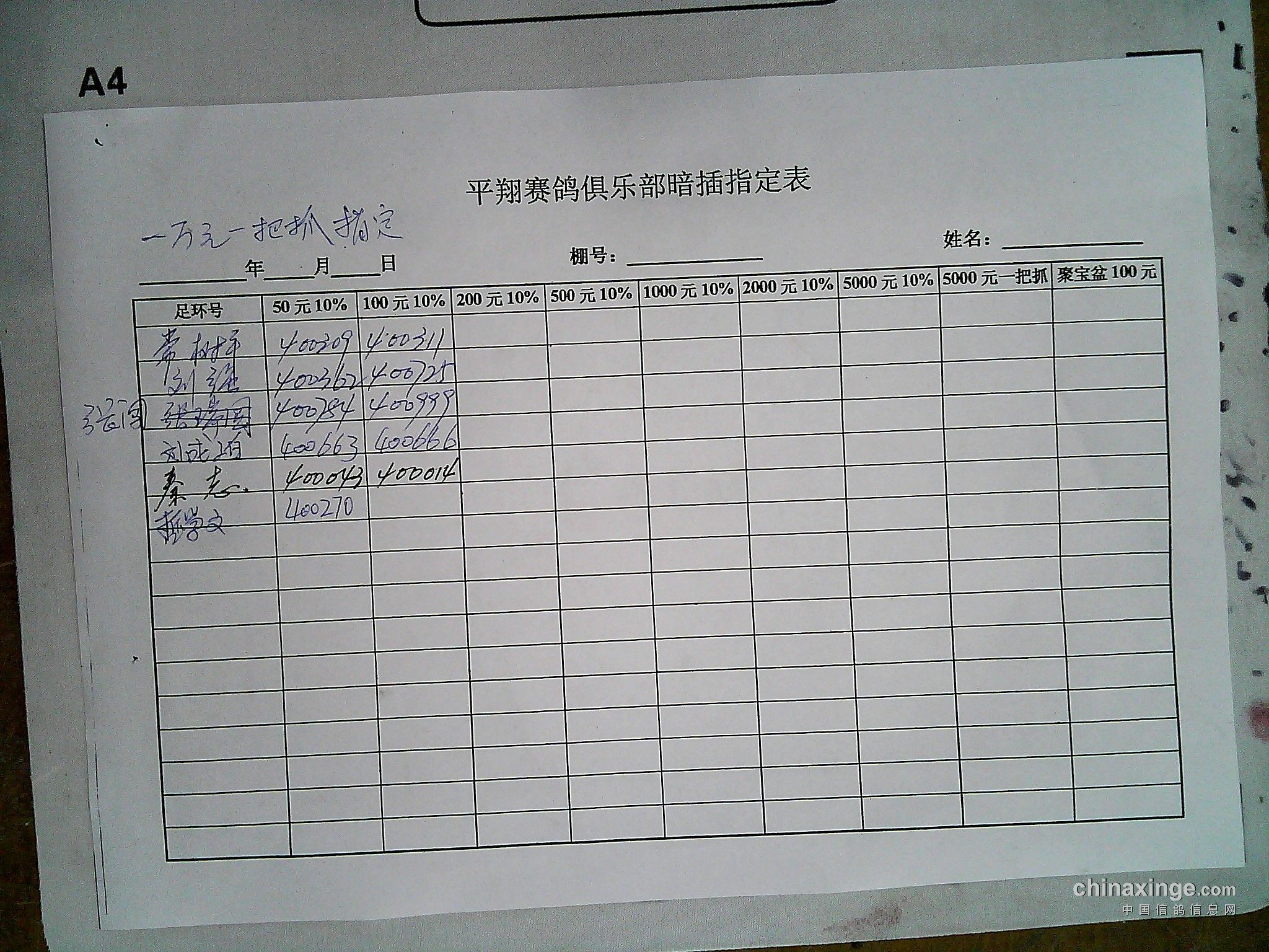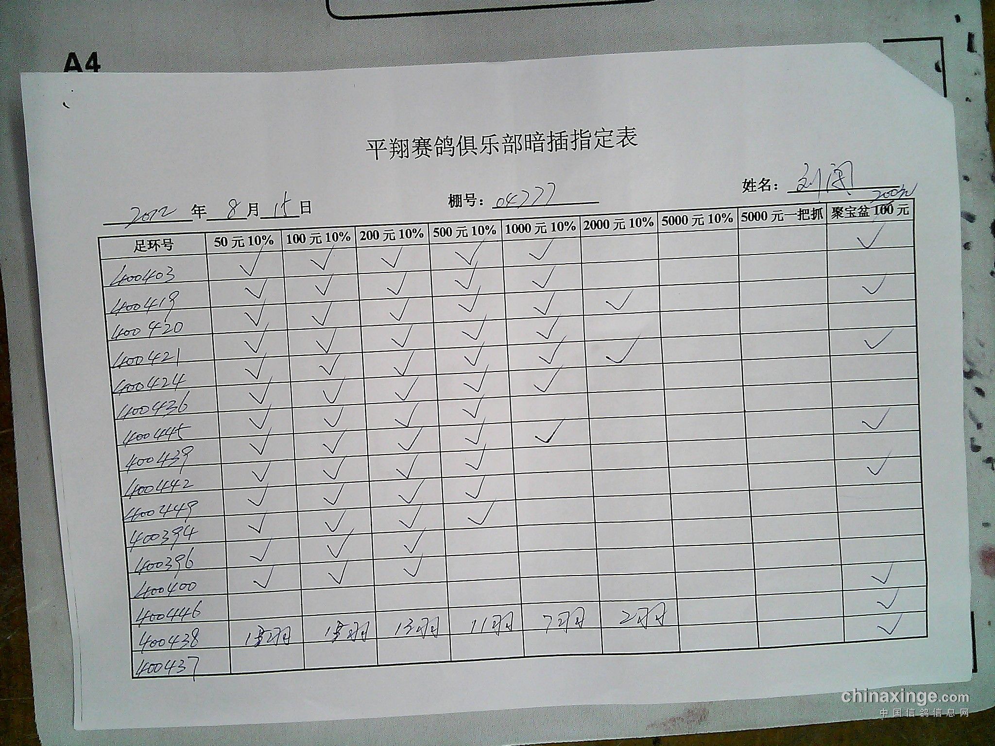 参加平翔赛鸽俱乐部拍卖的鸽友