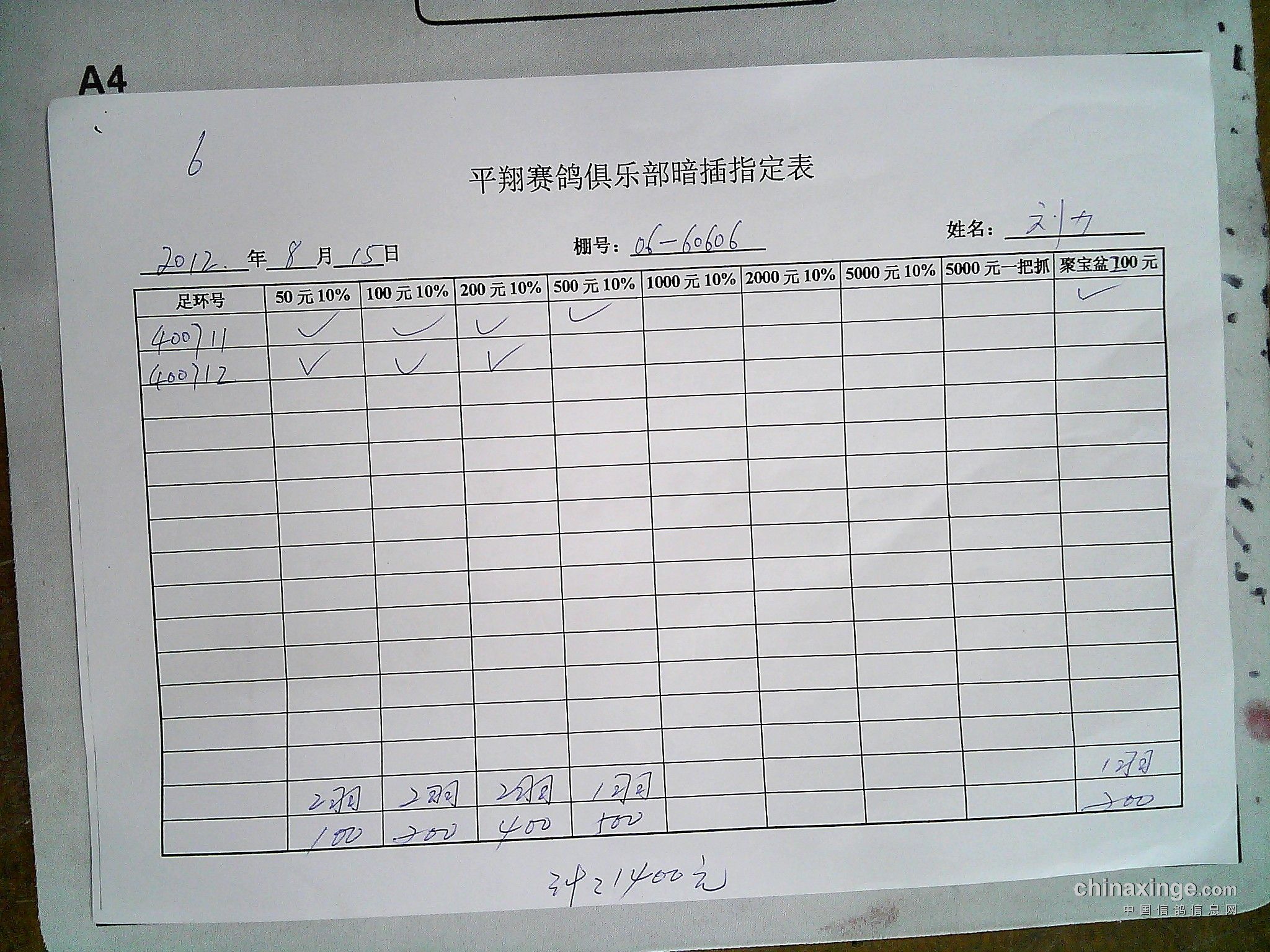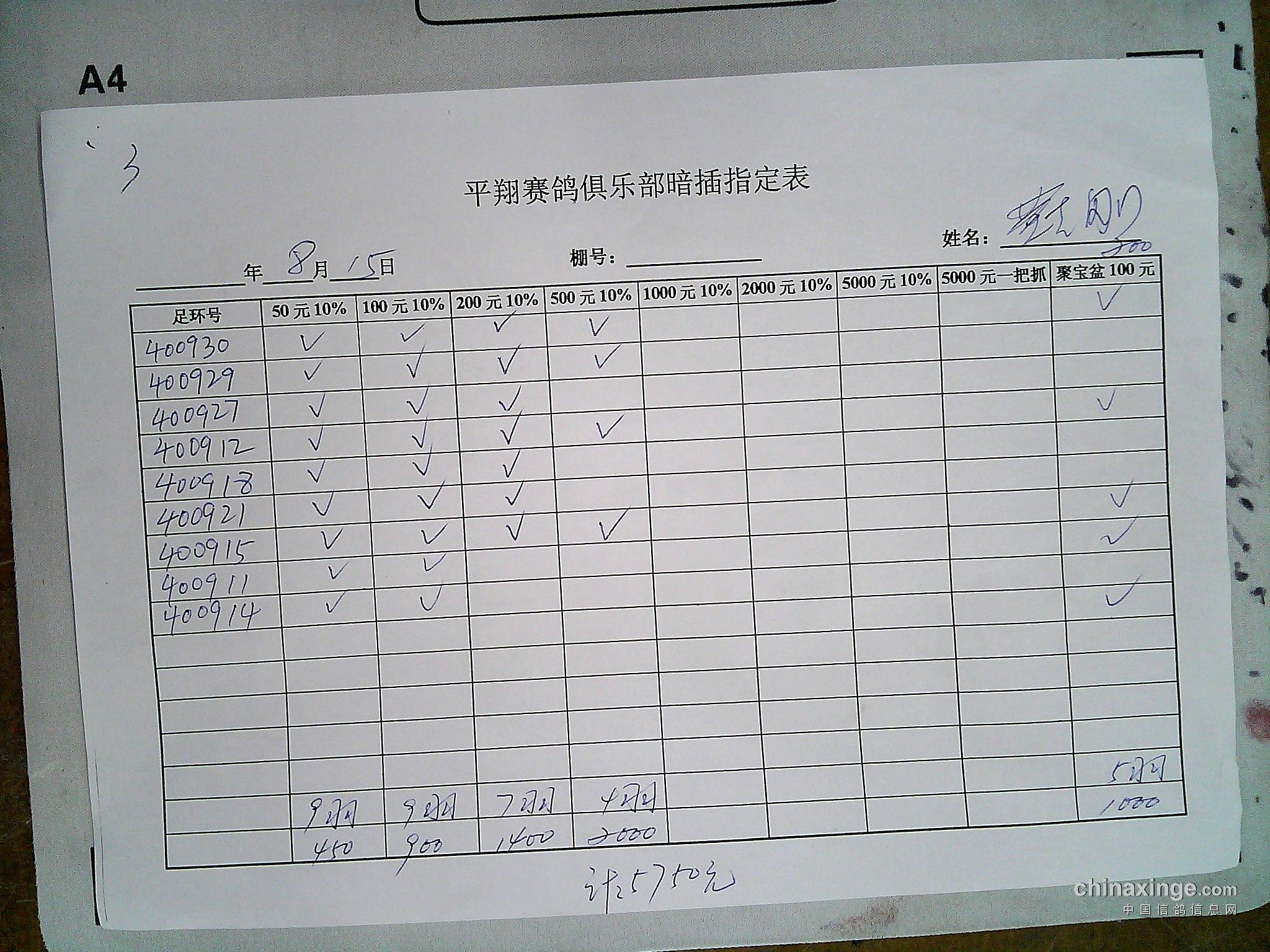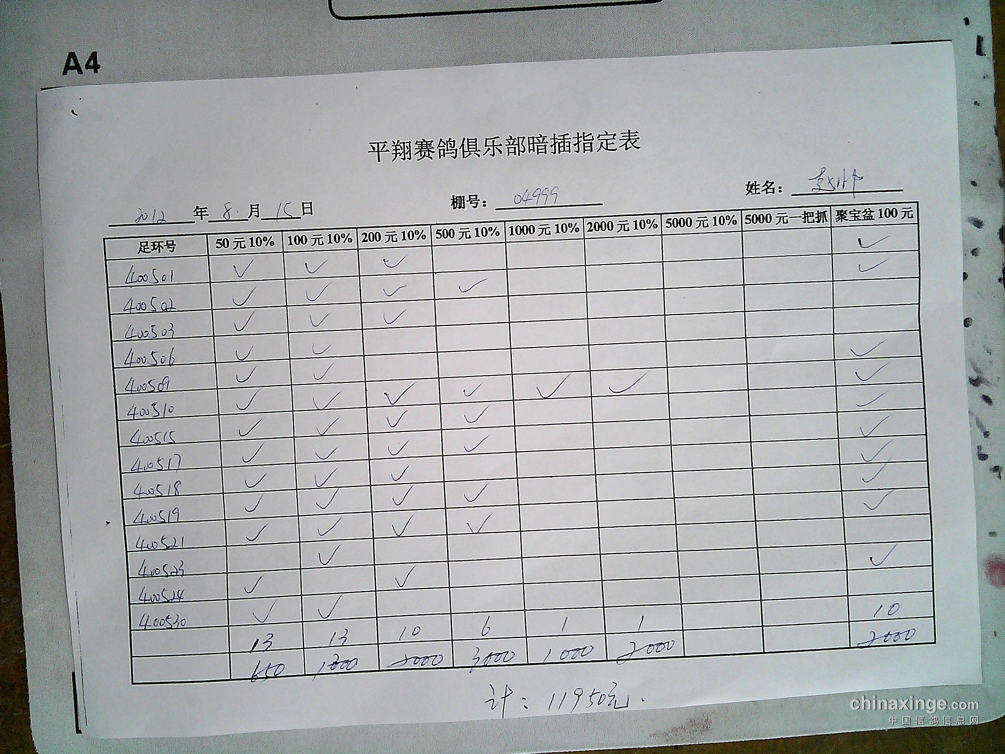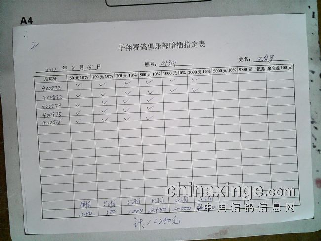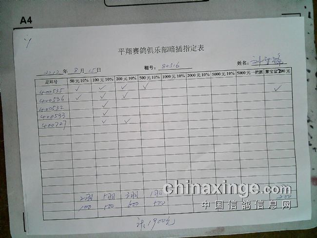 平翔信鸽俱乐部2021年秋季特比环截止1月4日售环2150枚