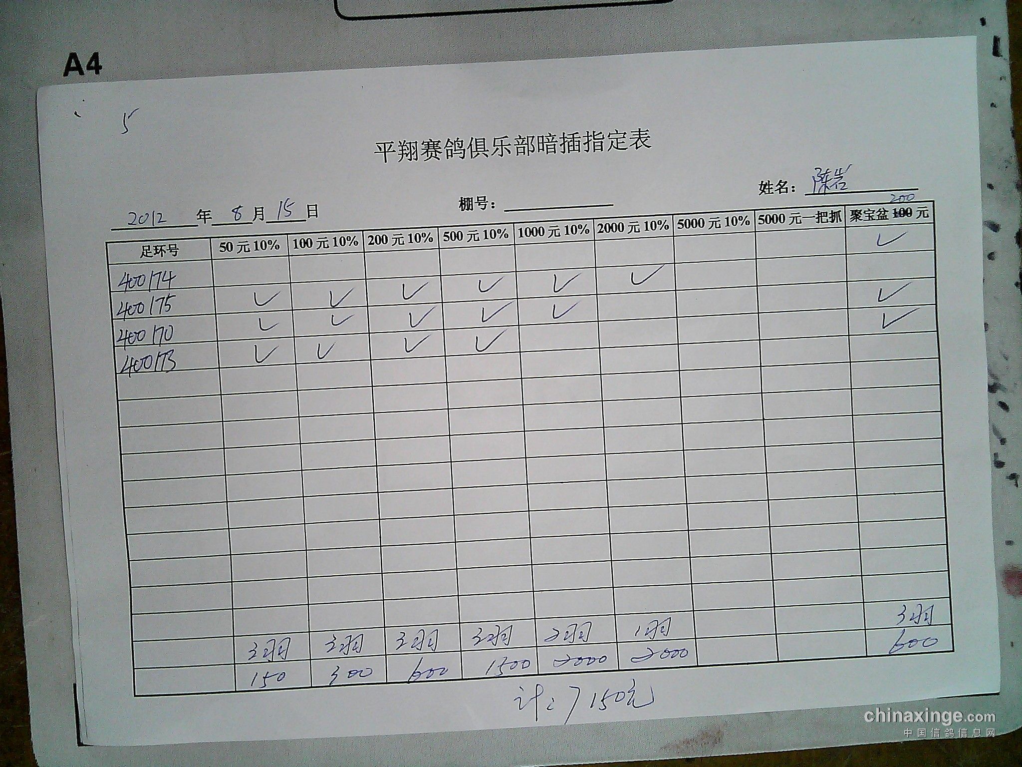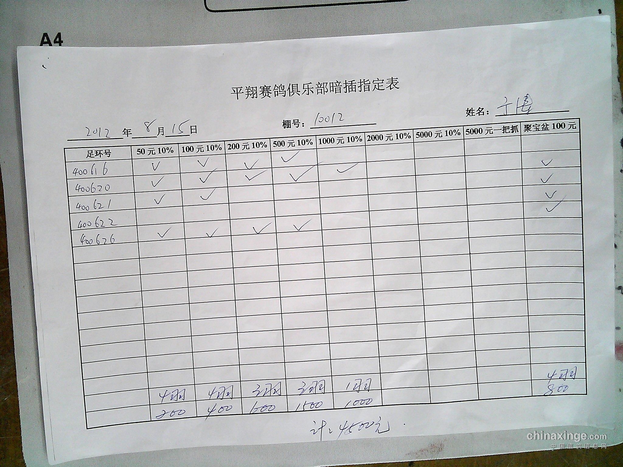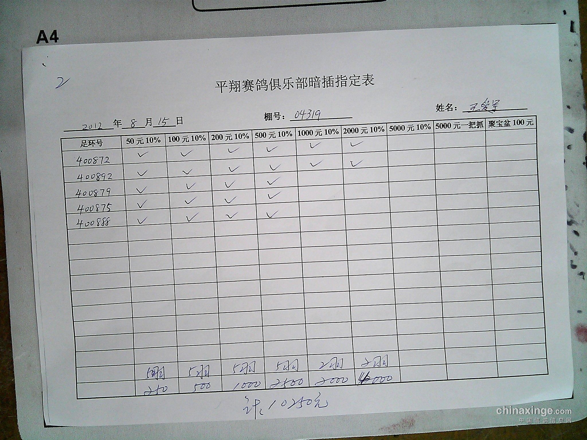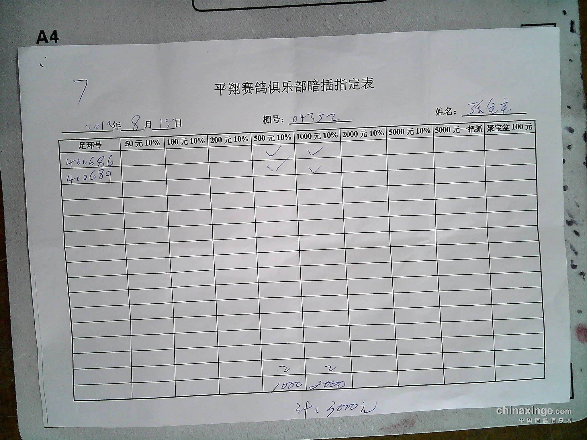 平翔信鸽俱乐部2021年秋季特比环截止1月4日售环2150枚