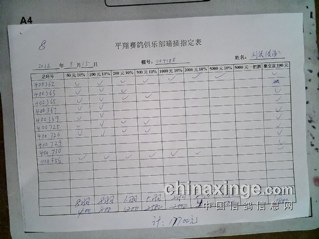 平翔信鸽俱乐部特比环已经售出1700枚