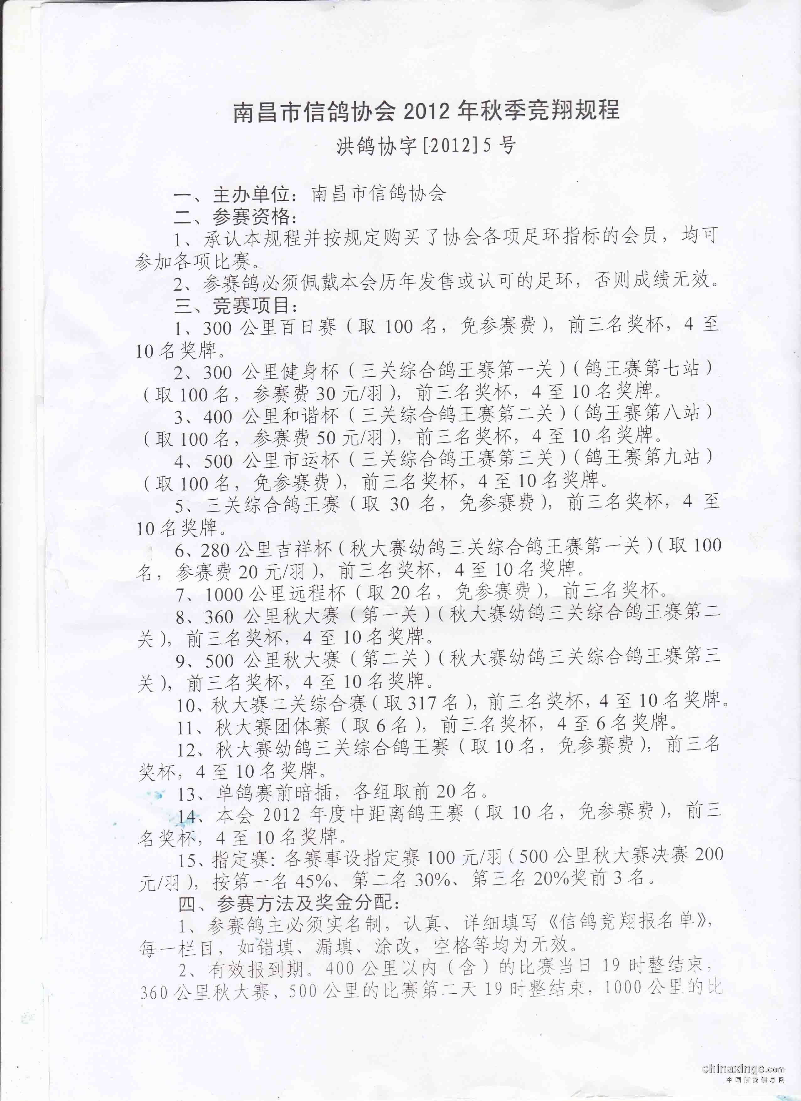 南昌市的赛鸽水平这么差?300公里奖金比500公里奖金高出近一倍?这个问题南昌市信鸽协会要负责任.赛鸽运动的方向性出岔子了.