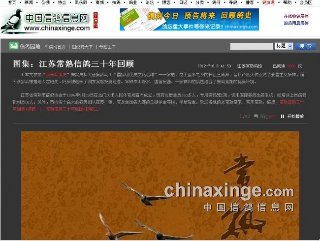 友的是对历史的感怀,是对哪些对赛鸽进程起到促进作用的贡献者们的崇高敬意! 向此次活动的发起者们致以崇高的敬意,是你们让我们这些后入江湖者了解了常熟鸽坛的历史,是你们让我们感怀到了饲鸽的沧桑,当然,最让我们回味的是鸽子在历史的进程给鸽迷们