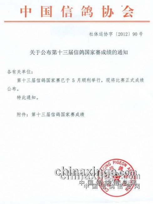 | 第十三届信鸽国家赛郑州赛区西线500公里成绩 |