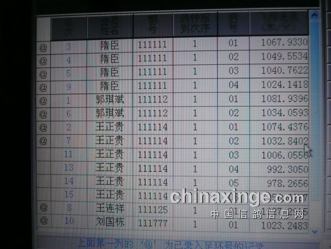 浑江区鸽协170公里指定鸽速度赛成绩。