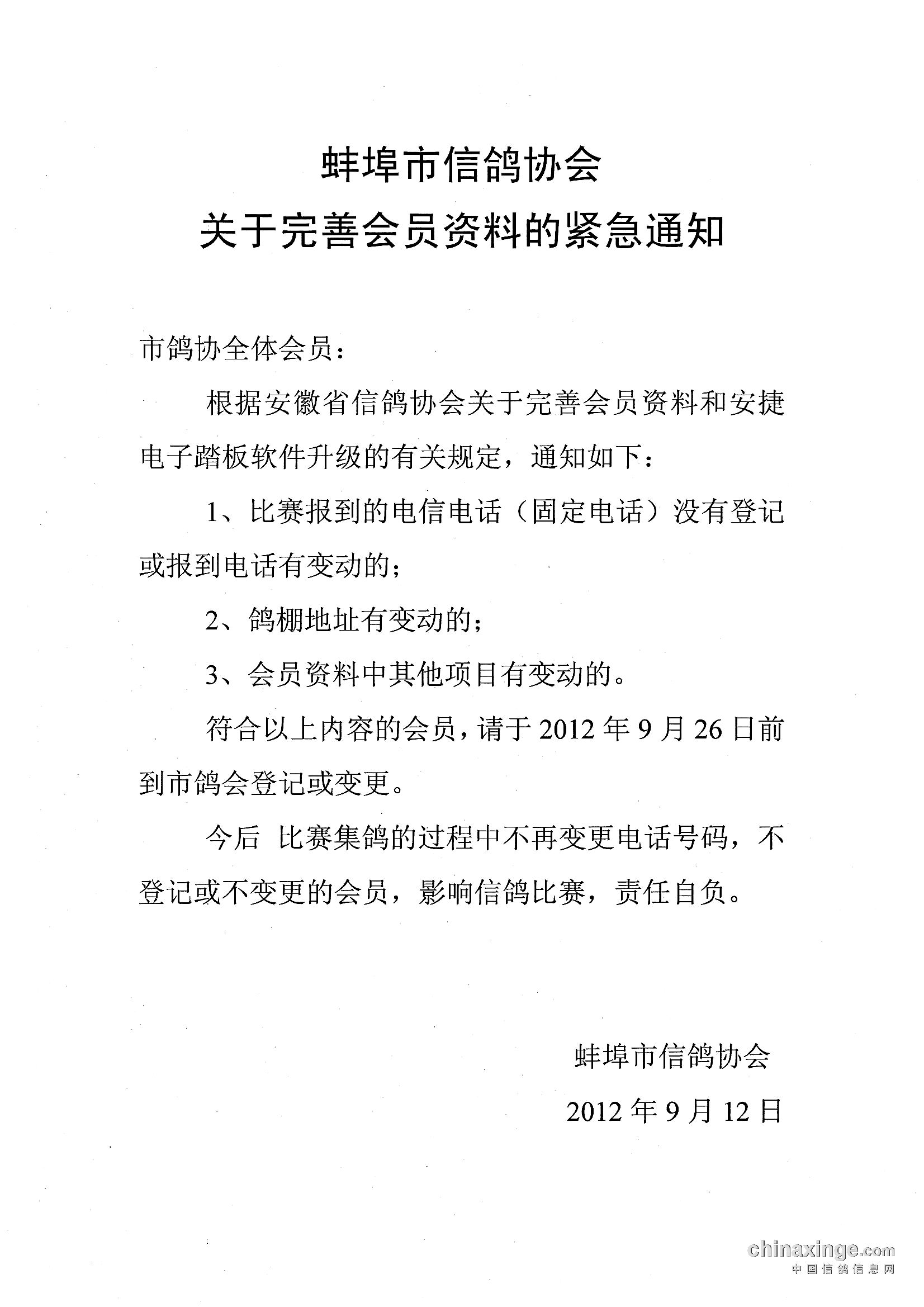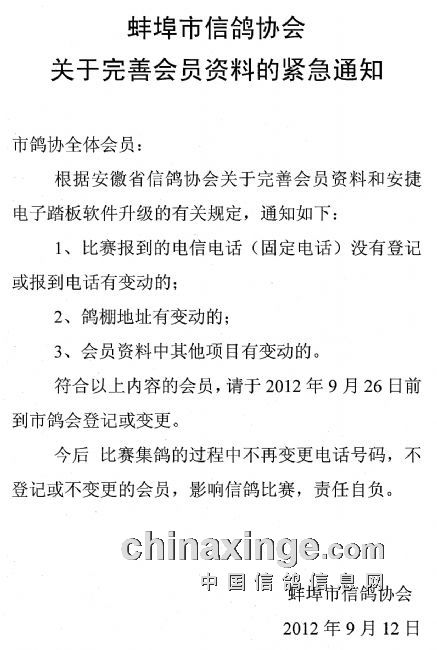 蚌埠市信鸽协会关于700公里廊坊站集鸽的通知