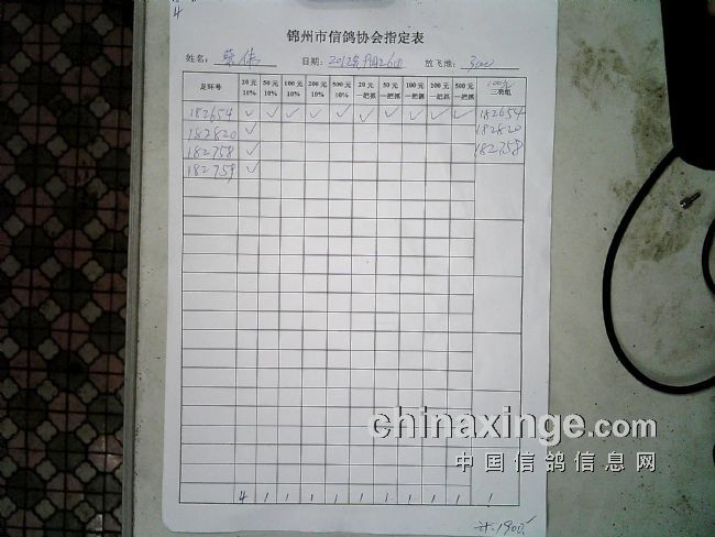 平翔信鸽俱乐部2021年秋季特比环截止1月4日售环2150枚
